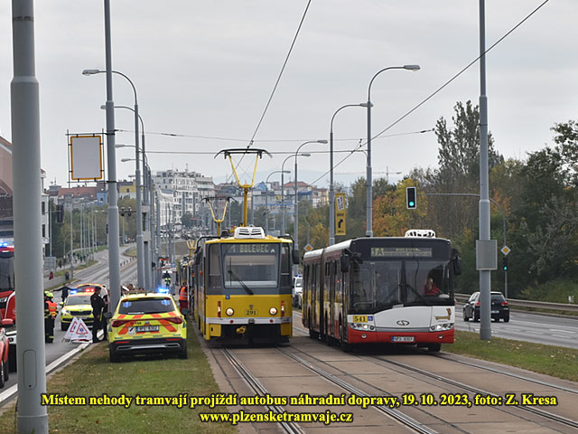 Ve čtrtek 19. 10. 2023 přibližně ve 12:20 došlo k vážné nehodě dvou tramvajových souprav na Karlovarské třídě nad zastávkou Pod Záhorskem. Provoz na vozovce ve směru z centra byl po dobu zásahu záchranářů zcela uzavřen.