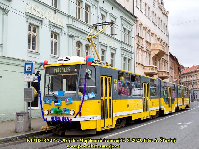 V rámci konání Majálesu vyjela v sobotu i speciální vyzdobená tramvaj, která jezdila přes poledne od Synagogy na Bory a v noci od Univerzity