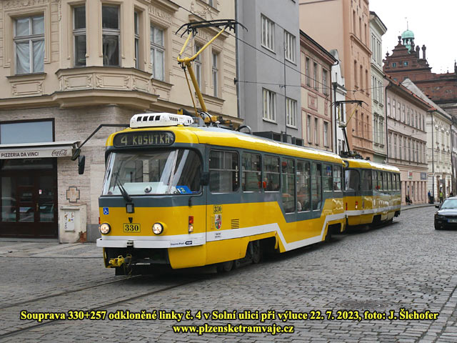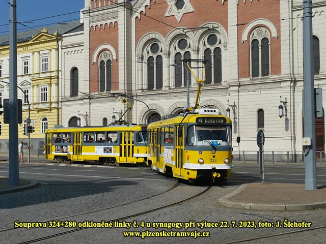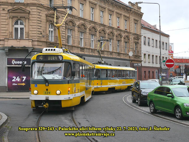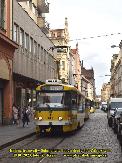Ve směru od Košutky, Bolevce i Skvrňan tramvaje dotčené místo objížděly Palackého ulicí a čtyřky od Bor pak byly odkloněny přes náměstí Republiky, Zvon a Solní ulici.