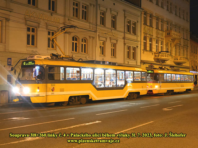Večer 31. 7. 2023 probíhala cca od 22:00 již výluka, kdy byla linka č. 4 ukončena v sadech Pětatřicátníků a na Bory pokračovaly autobusy náhradní dopravy. Důvodem byla instalace