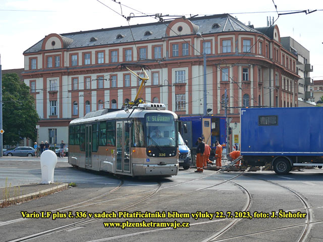 V sobotu 22. 7. 2023 probíhá výluka na tramvajových linkách z důvodů výměny kolejového křížení v sadech Pětatřicátníků.