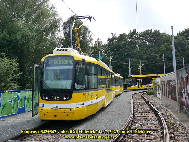 Tramvaje linky č. 2 jsou provozovány pouze v úseku Světovar - Malesická. Cestující pokračující do Skvrňan musí dále využít náhradní