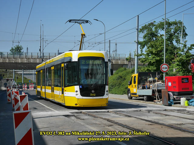 Po skončení výluky do Skvrňan, ale ještě v době pokračování výluky na náměstí Generála Píky, jsou na linku č. 2 v trase Skvrňany - Světovar přes Slovany, nasazovány