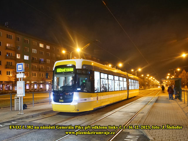 Od 7. 10. 2023 do cca 15. 12. 2023 je na náměstí Generála Píky vedena linka č. 1 z Bolevce. Na lince č. 1 jsou tak nasazeny výhradně obousměrné vozy. Kromě KT8D5-RN2P a 40T se na šejdrech objevují také Vario LF 2/2 IN.