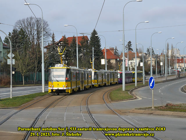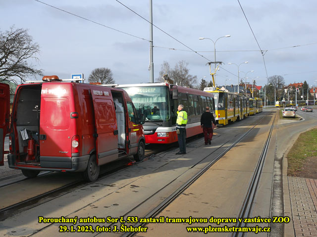 V neděli 29. 1. 2023 dopoledne se autobus linky č. 27 Sor č. 533 zastavil se závadou v zastávce ZOO. Sice se na místě brzy objevili pracovníci servisní firmy, ale i tak byl