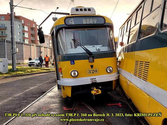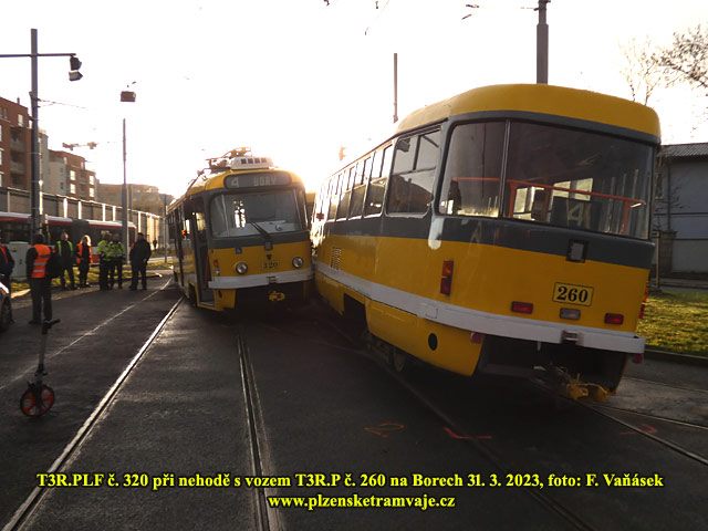 31. 3. 2023 v cca 5:30 došlo ke střetu dvou tramvají nedaleko terminálu Bory. Souprava v čele s tramvají T3R.PLF č. 320 směřovala od centra do konečné Bory. Tedy přes rozjízdnou výhybku