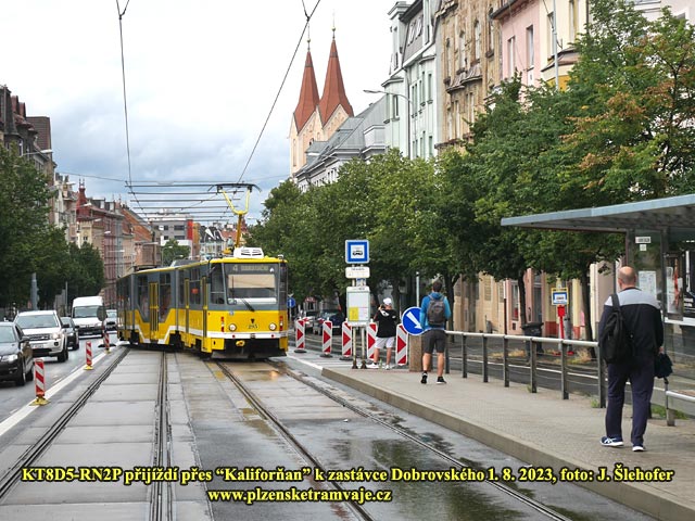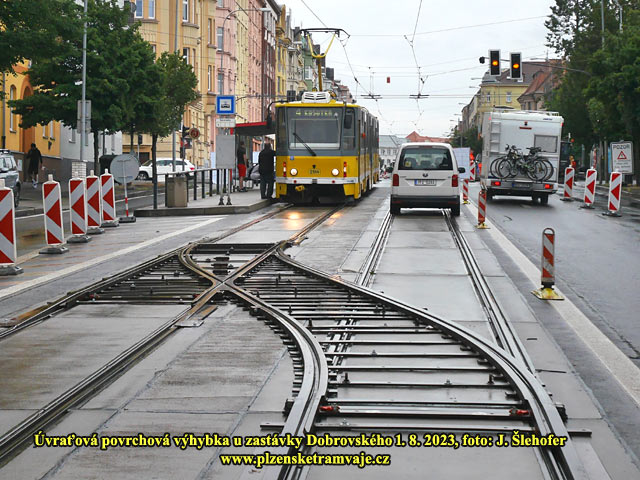 Současně plzeňská vodárna využívá výluky tramvaje k výměně potrubí u zastávky Dobrovského.