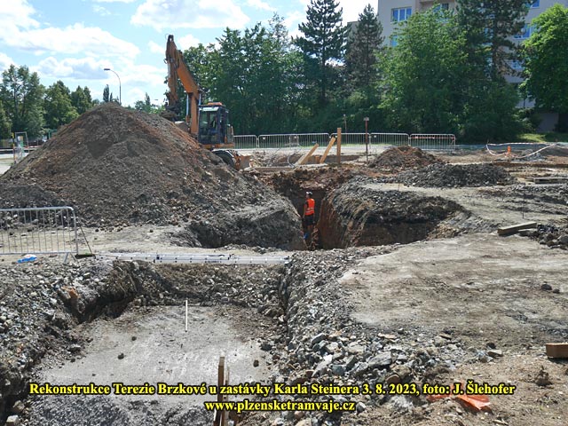 Po rozebrání kolejiště včetně rozbití podkladové betonové desky i okolních vozovek, byla během července a srpna rekonstruována vodárenská