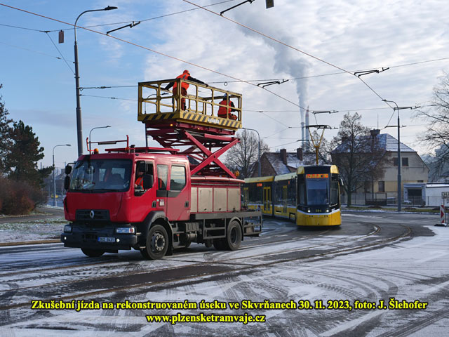 Zahájení tramvajového provozu do Skvrňan je naplánováno od 1. 12. 2023.