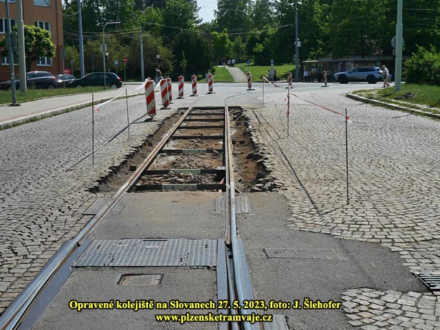 Současně ve stejné době byly také měněny koleje před rozjezdovou výhybkou na Slovanech.
