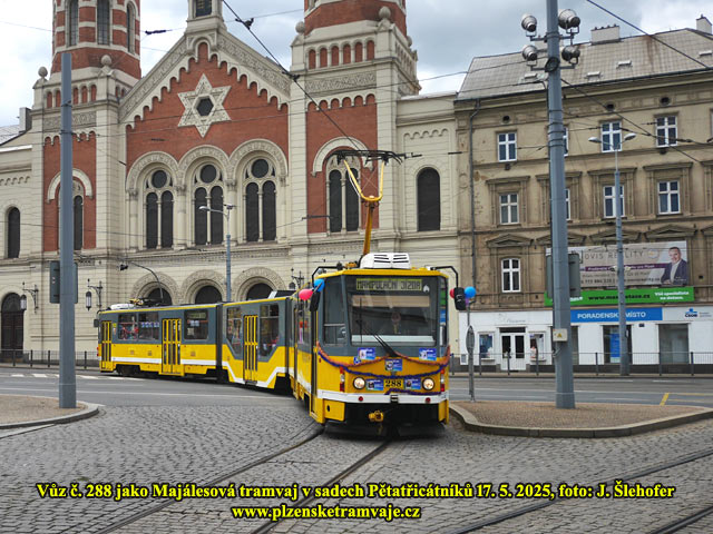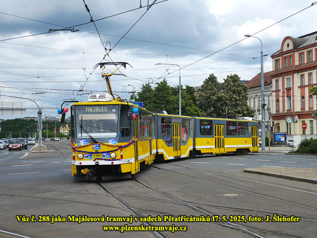V sobotu 17. 5. 2025 brobíhá na Borech tradiční Majáles. Organizátoři velkého open air koncertu objednali také zvláštní tramvaj, která posilovala před začátkem hlavních koncertů a také po skončení akce, dopravu mezi centrem města a Bory. Uvnitř vyzdobeného vozu KT8D5-RN2P č. 288 probíhal již cestou kulturní program.