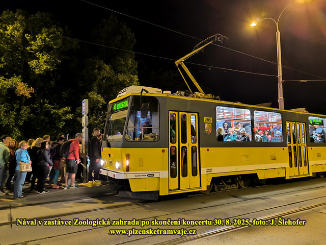 V sobotu 30. 8. 2025 se konal na lochotínském amfiteátru koncert Marka Ztraceného s očekávanou návštěvností 17 tisíc lidí. Již po celý den na linkách č. 1 a 2 oproti obvyklé víkendové výpravě byly nasazeny velkokapacitní vozy. Pro odvoz návštěvníků po skončení akce pak byla posílena tramvajová doprava o další spoje. Celkem 9 souprav jelo večer na víc nad běžný jízdní řád. Řidičům šesti souprav byly prodlouženy směny a vykonaly tak spoje z Košutky či Bolevce do různých směrů. Další tři posilové soupravy tramvají 2xEVO2 vyrazily z vozovny. Do dalších částí města také jely posilové autobusy (4x Doubravka, 2x Ústřední hřbitov). Nutno dodat, že na posílení dopravy finančně přispěl pořadatel koncertu.