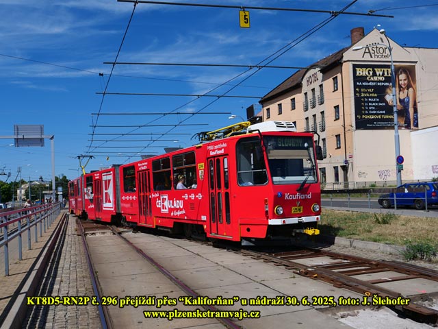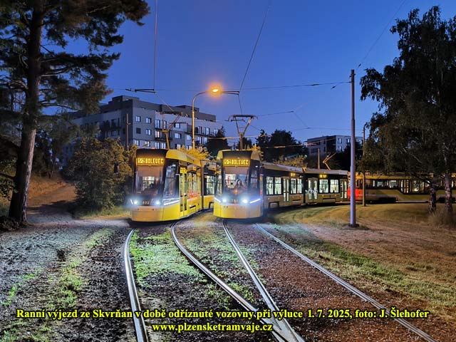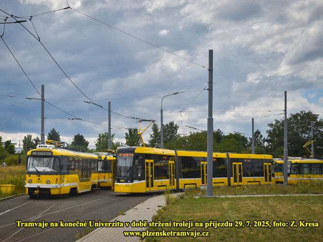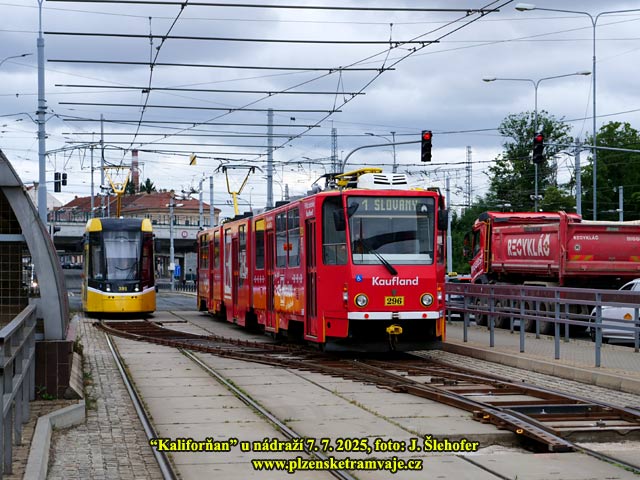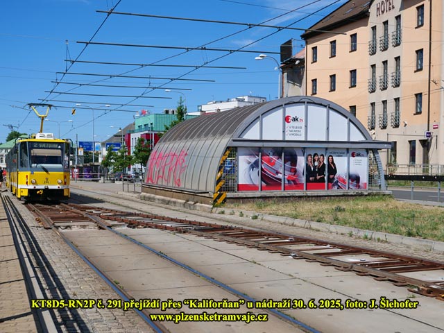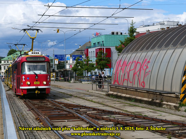 Pravidelný provoz tramvají bude obnoven od pondělí 4. 8. 2025, čemuž bude v noci předcházet demontáž povrchové úvraťové výhybky (kaliforňanu) u nádraží. Již během neděle však tudy zatahují některé vozy do vozovny (ve směru z centra mohou přes kaliforňan přejet). Během odpoledne jsou to záložní vozy odstavené v obratištích a večer pak tudy projíždí do vozovny i vozy z linek 1/2 a 4.