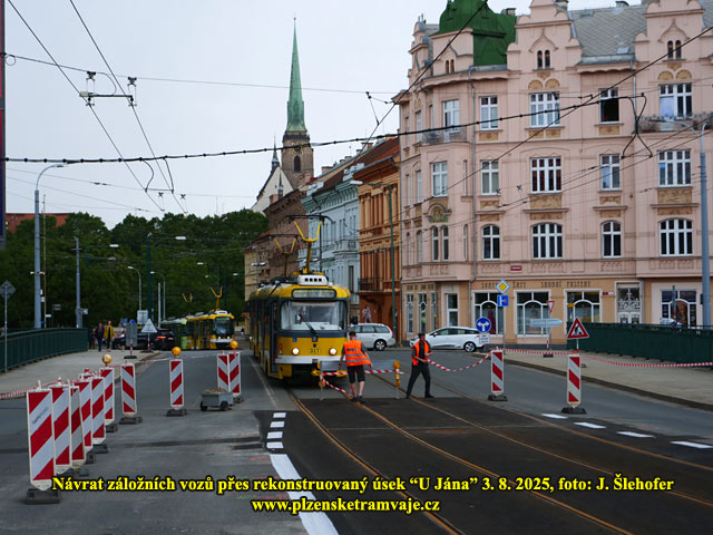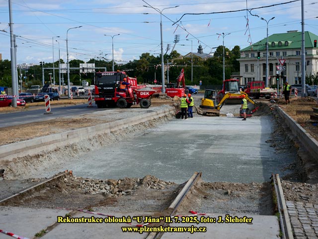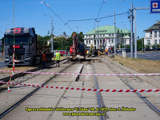 Na letošní léto byla plánována již dlouho připravovaná velká rekonstrukce křižovatky "U Jána" např. i s doplněním přechodů pro chodce. Protože se však sešlo ve stejnou dobu dopravních uzavírek více (zejména přestavba okružní křižovatky u Makra), byla rekonstrukce odložena, aby situace v plzeňské dopravě nebyla až moc dramatická. Stav kolejových oblouků však nebyl dobrý. Již zde byla delší dobu snížena rychlost na 15km/hod, a průjezd tramvají touto křižovatkou i vzhledem k několika trolejbusovým křížením (které je nutné přejíždět setrvačností) nebyl zrovna ideální. Nakonec bylo tedy rozhodnuto, že dojde nyní k rekonstrukci kolejových oblouků a na další úpravy křižovatky dojde až někdy později. Pravděpodobně to bude nejdříve za dva roky, neboť příští rok jsou komunální volby a místní politici mají takový zlozvyk, nepouštět se do větších stavebních akcí v roce voleb, aby voliče příliš nerozhněvali.