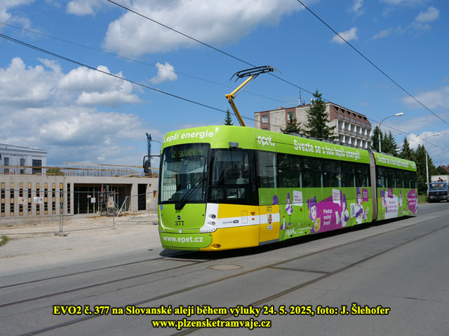 Od pondělí 13. 10. 2025 začala dlouhodobá výluka do Skvrňan. Tramvajová linka č. 2 od Světovaru je ukončena v sadech Pětatřicátníků. Ze zastávky Hlavní pošta pak musí cestujcí směřující do Skvrňan využít náhradní autobusové linky 2A.