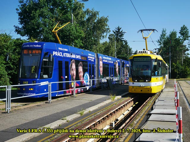 V druhém od vozovny odděleném tramvajové provozu je provozována tramvajová linka označená 1/2 v trase Bolevec - Skvrňany. Ve své normální trase je pak v provozu linka č. 4, tedy z Košutky na Bory, či některé spoje až na konečnou Univerzita.