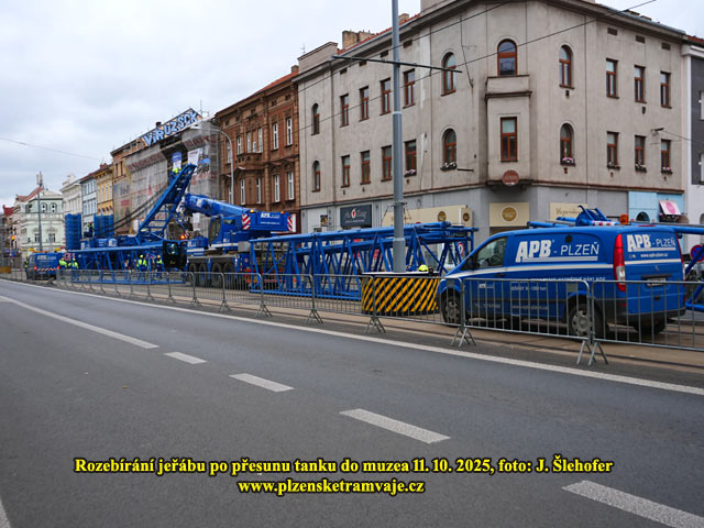 Následně byl jeřáb během sobotního odpoledne opět rozebrán. Demontáž převěsů trolejového vedení nebyla ani tak nutná pro samotný přesun tanku, jako hlavně pro stavbu a rozebírání jeřábu. Na obnovu trolejového vedení do původního stavu je pak nedělní dopoledne. Provoz tramvají na Bory se vrací v neděli 12. 10. 2025 cca ve 14:00.