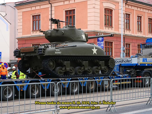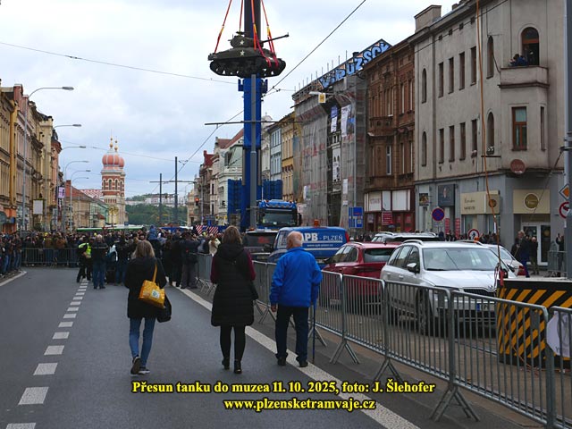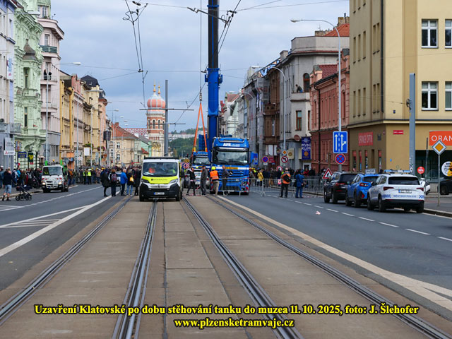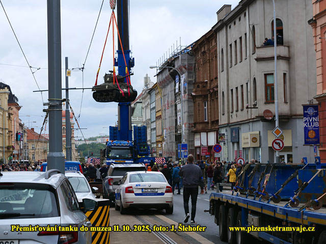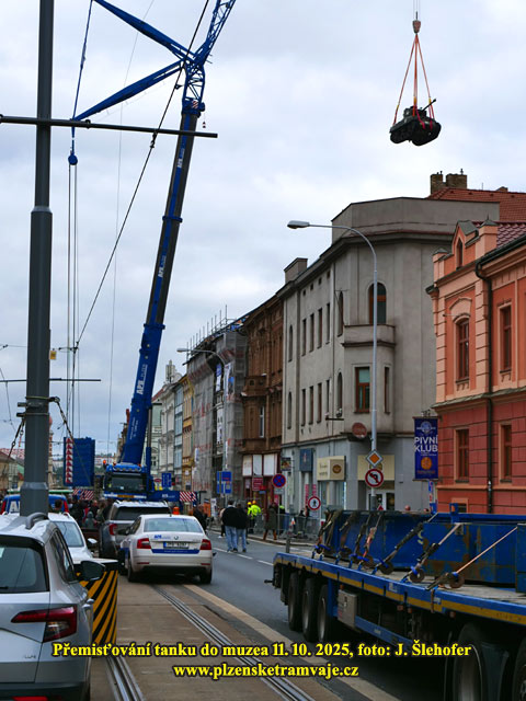 V sobotu 11. 10. 2025 probíhalo stěhování tanku do budoucího muzea na Klatovské třídě. Protože by tank neprojel vjezdem do dvora, byl z Klatovské třídy přesouván pomocí jeřábu přes střechy domů. A protože jeřáb musel být trochu větší, bylo nutné k jeho postavení demontovat převěsy tramvajového trolejového vedení. Na místě tak bylo postaveno několik provizorních sloupů s výložníky, které držely posunuté troleje v době stočení čtyř převěsů z domů.