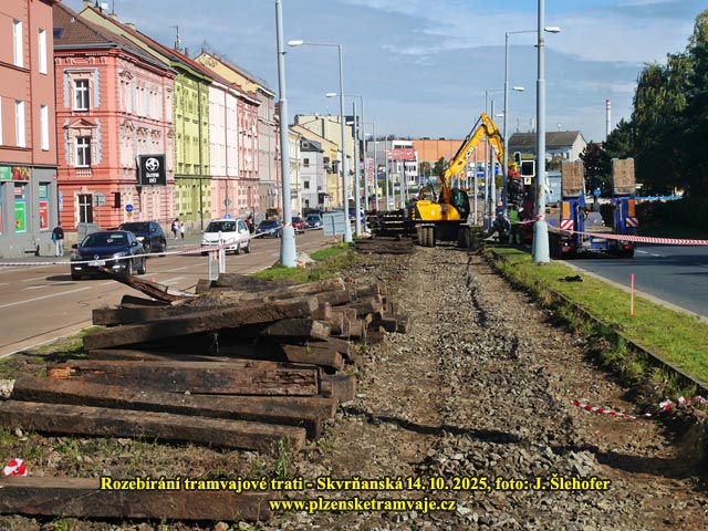 Před plánovanou rekonstrukcí tramvajové trati na Skvrňanské a Přemysově třídě bylo potřeba udělat pár fotografií stavu v posledních dnech provozu. Jde o první tramvajovou trať v Plzni, kde byly použité dřevěné pražce a otevřený kolejový svršek (vybudována v letech 1988-89). Druhou takovou byla ta v Bolevci, která však je již po rekonstrukci a vypadá jinak. Také sem se již tato podoba trati nevrátí. V úseku od sadů Pětatřicátníků k Plaze byl měla trať být zakryta, aby byla sjízdná i vozidly IZS (u sadů Pětatřicátníků bývají kolony, tak aby bylo možné je objet) a další úsek trati byl měl být ozeleněn. Bohužel zde však nemají být použité bezžlábkové kolejnice, což je škoda. Jízda po nich je výrazně klidnější a tišší (zkušenost Košutka - versus Bolevec a to i před ozeleněním).