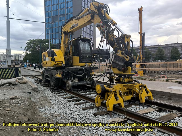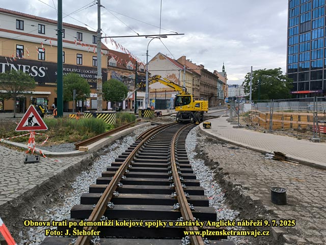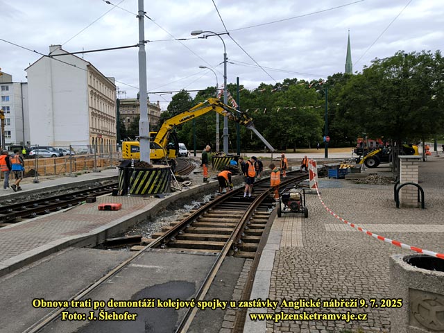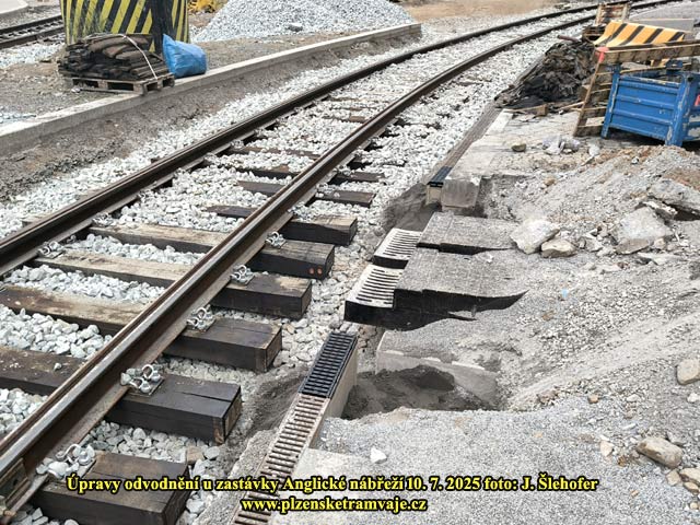 Po vyjmutí kolejové spojky u zastávky Anglické nábřeží zde rychle vzniká nové kolejiště. Kolejnice jsou uchyceny opět do dřevěných pražců. Upravuje se zde také odvodnění, aby zde už nedocházelo k zaplavení trati, při přívalových deštích. Při nich obvykle bývá vyplaven písek z prostoru po domu U Zvonu a po ucpání kanalizace zde laguna již opakovaně zastavila tramvajový provoz. Zda současné úpravy problém vyřeší však poznáme až po nějaké vydatné průtrži mračen.
