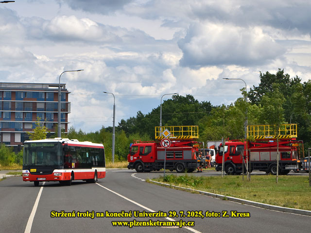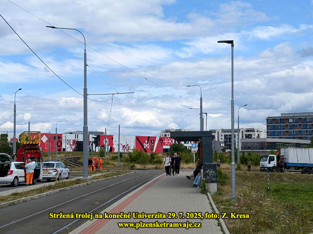 V úterý 29.7. 2025 cca ve 13:30 došlo k nehodě při které řidič nákladního vozu strhnul nesloženou hydraulickou rukou trolejové vedení v obratišti Univerzita.