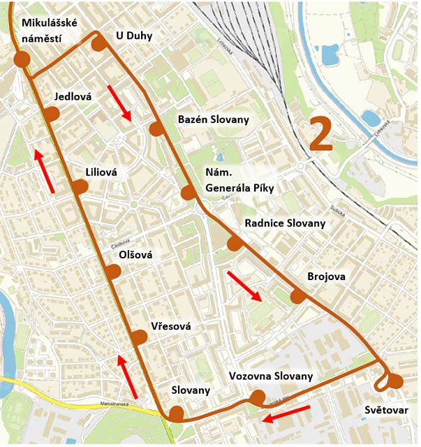 V sobotu 23. 8. 2025 v době cca 6:30 - 17:30 probíhá výluka v Solní ulici z důvodu výměny výhybky. Tramvaje linek 1 a 2 od Slovan a Světovaru jsou ukončeny v zastávce Anglické nábřeží a točí se tak v obratišti U Zvonu.