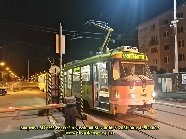 tedy 16. 8. 2021 naposledy zatahovaly tramvaje původním vjezdem, tedy přímo Slovanskou alejí od Slovan. Ráno 16. 8. 2021 tudy ještě tramvaje také vyjížděly,