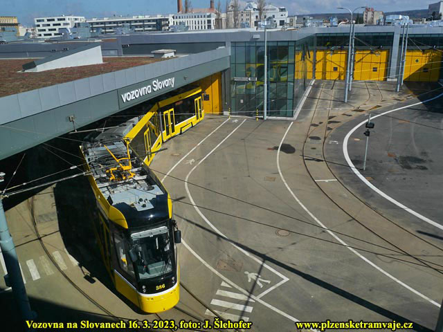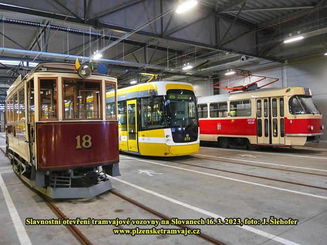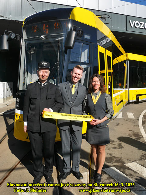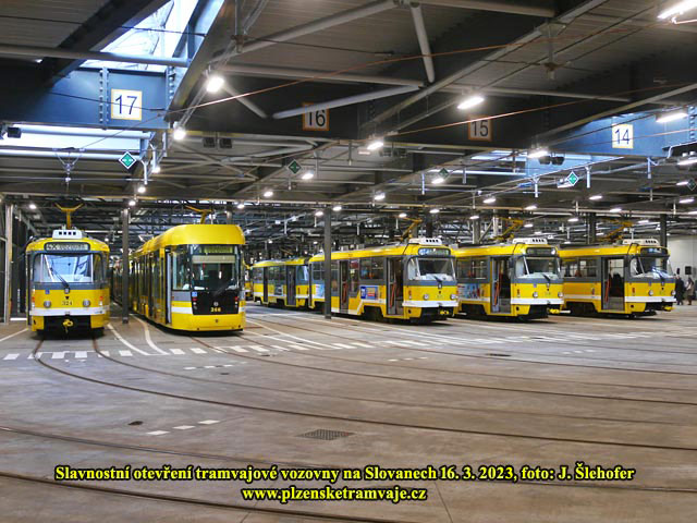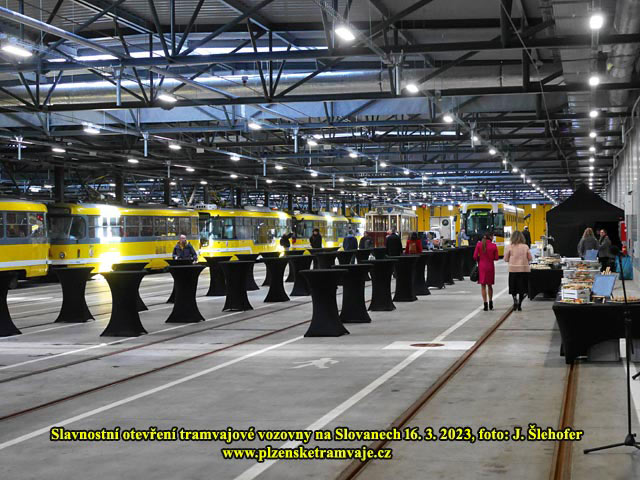 Ve čtvrtek 16. 3. 2023 proběhlo dopoledne slavnostní otevření nové tramvajové vozovny na Slovanech. Pro zvané hosty jela také zvláštní tramvaj do centra města, s odjezdem v 9:30 z obratiště U Zvonu.