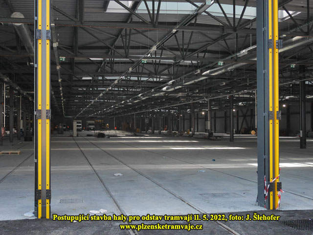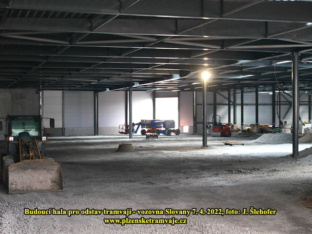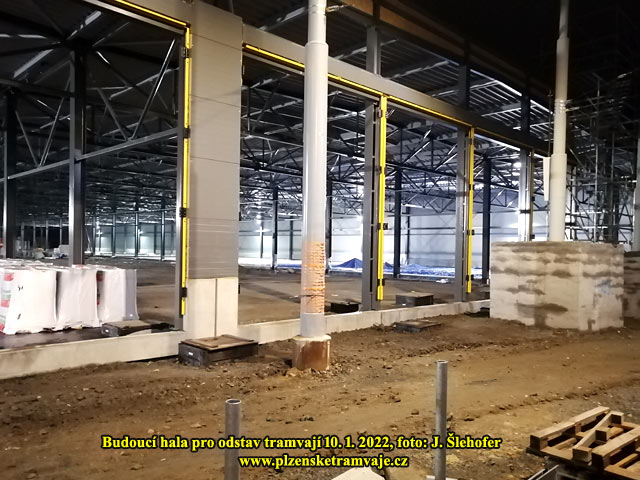Vedle ní stojí již také hala pro odstav vozů, ve které se teprve v lednu 2022 betonují povrchy a následně buduje kolejiště.