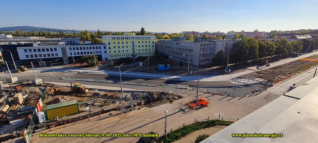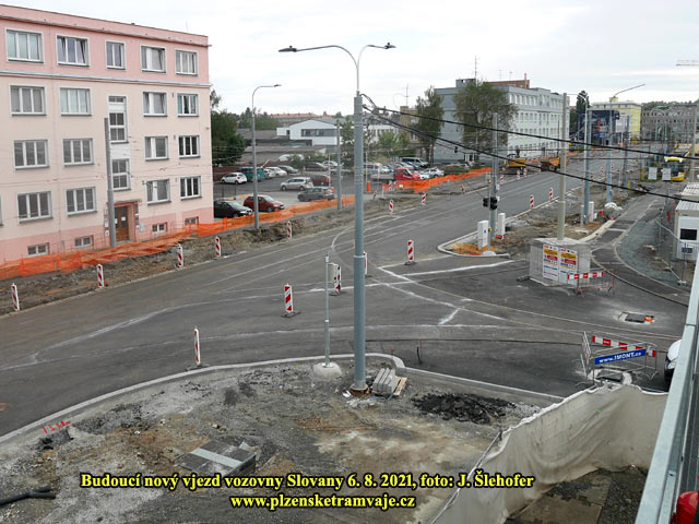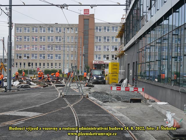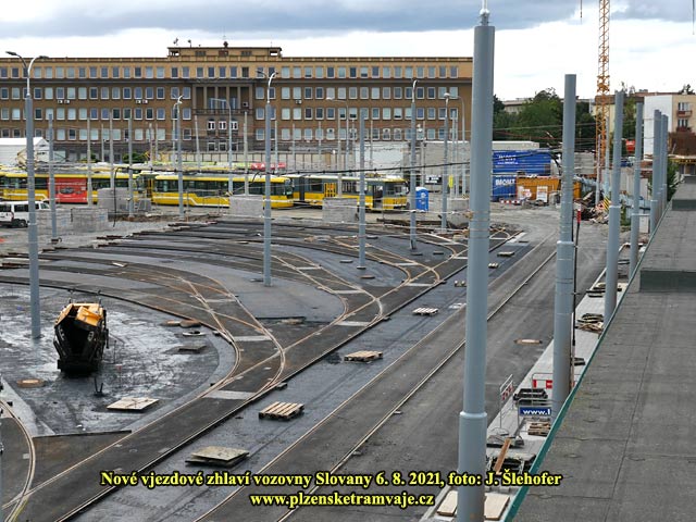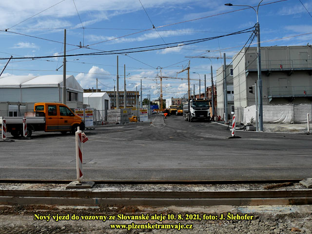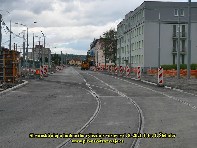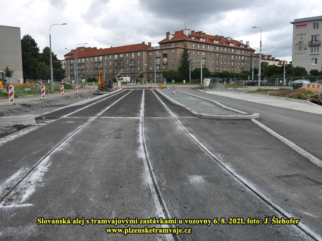 V srpnu se finišuje s kolejištěm, ale také s povrchy v zadní části Slovanské aleje a také s novým vjezdem a novou vjezdovou harfou vozovny. Sem byl měl být přesunut provoz