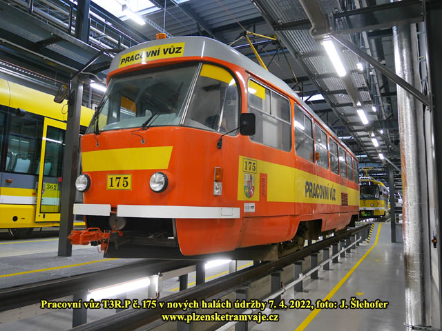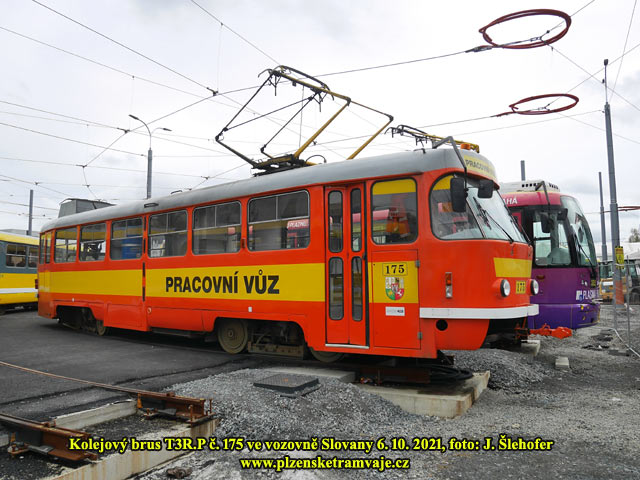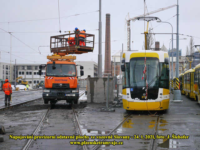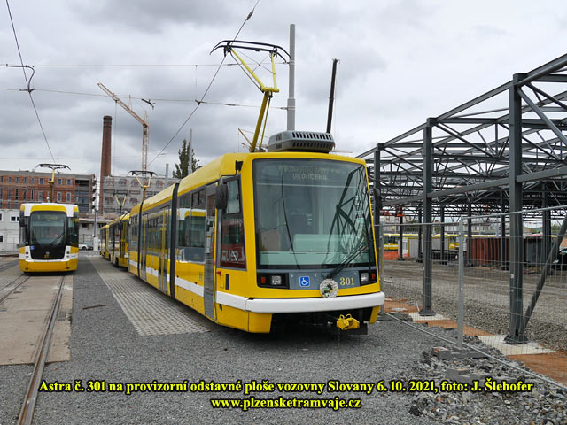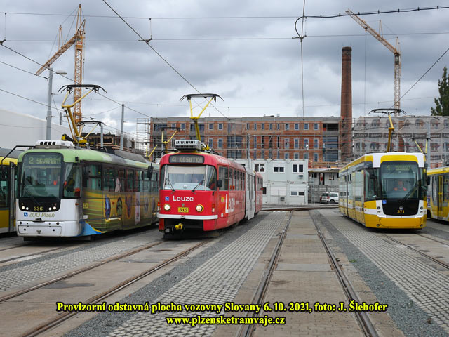 levé straně stojí na nově vybudované provizorní odstavné ploše, v místě původních garáží vozidel horního vedení.