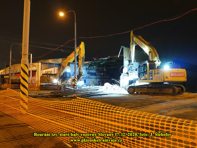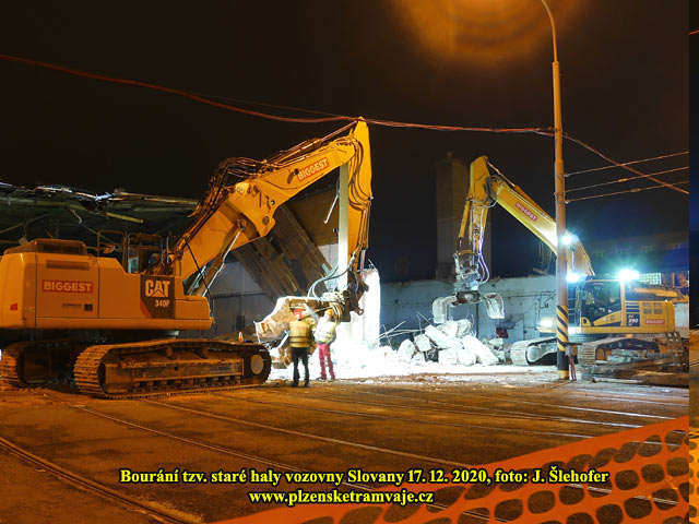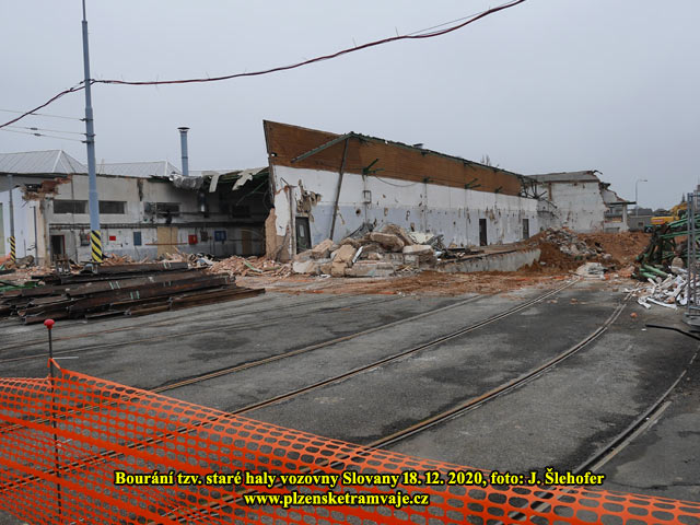 Bourání staré haly pak začíná v polovině prosince 2020. Bagry se do ní zakusují od její zadní části, po odbourání tzv. trolejbusové haly, která sloužila pracovníkům vrchní stavby.