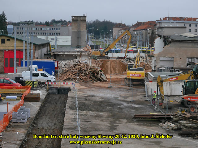 Během listopadu 2020 již probíhají demoliční práce např. na garážích v severní části areálu, kde parkovaly vozy pro opravy trolejového vedení. Postupně je také vyklízena "stará hala".