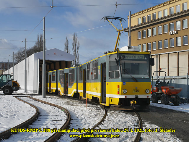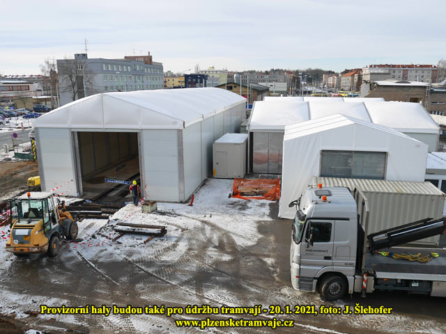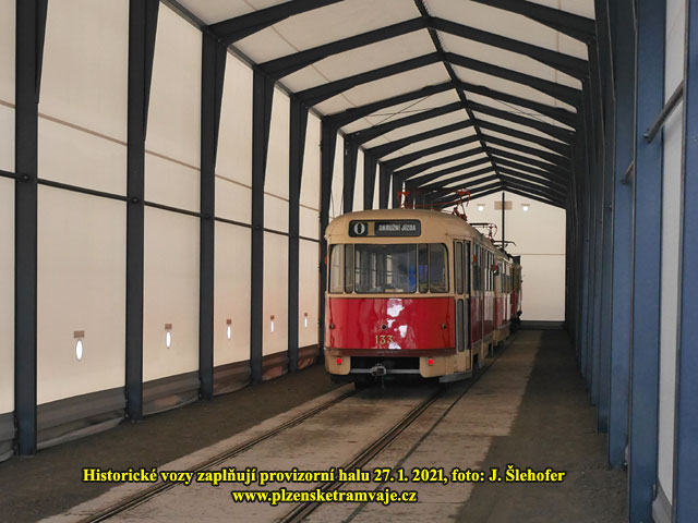 Z toho důvodu došlo 27. 1. 2021 k přestěhování historických vozů do provizorní haly. Ta byla postavena zcela vlevo vedle odstavných kolejí, tedy v místě, kde stály původně garáže.