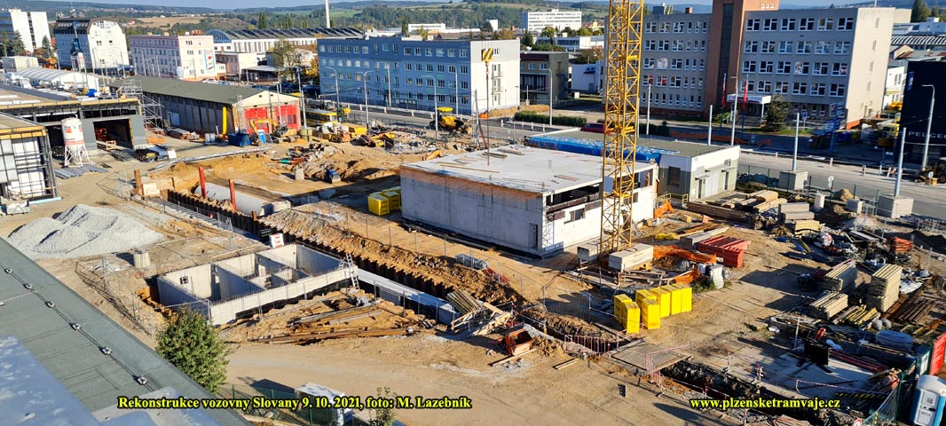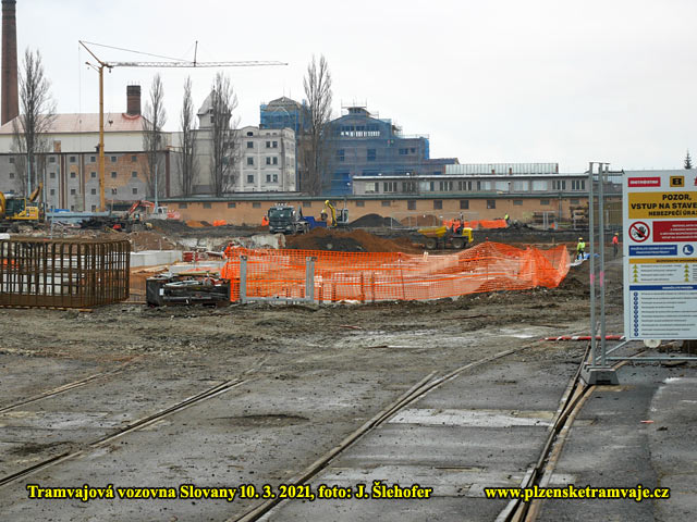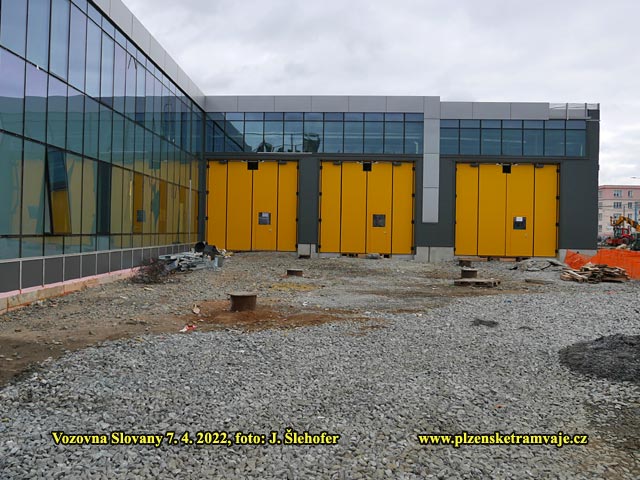 Celá rekonstrukce vozovny Slovany, včetně administrativní budovy, by měla skončit cca v březnu 2023.