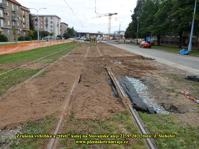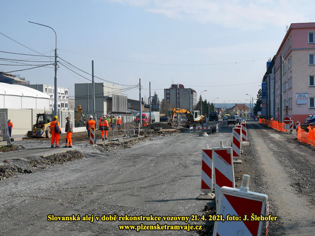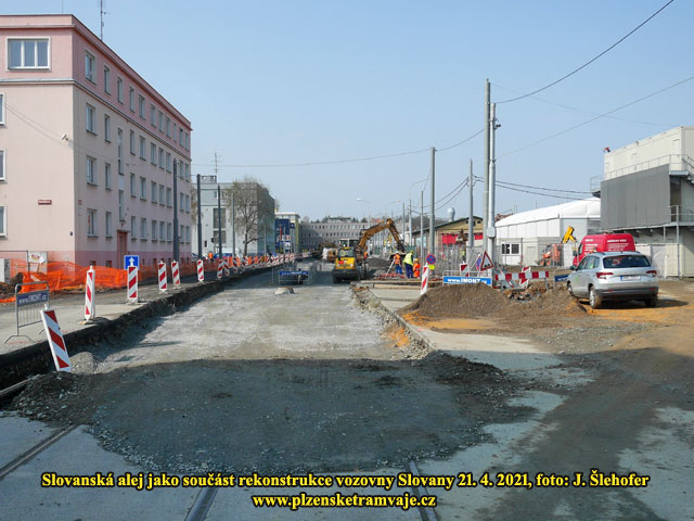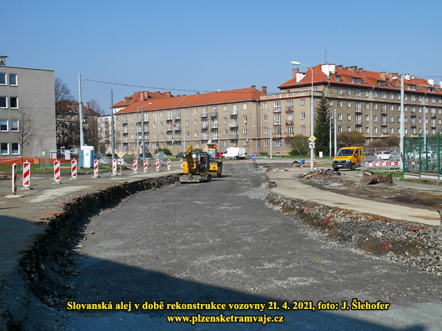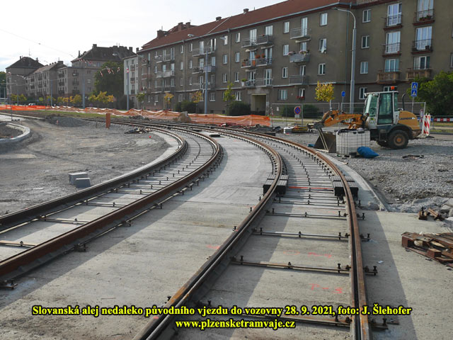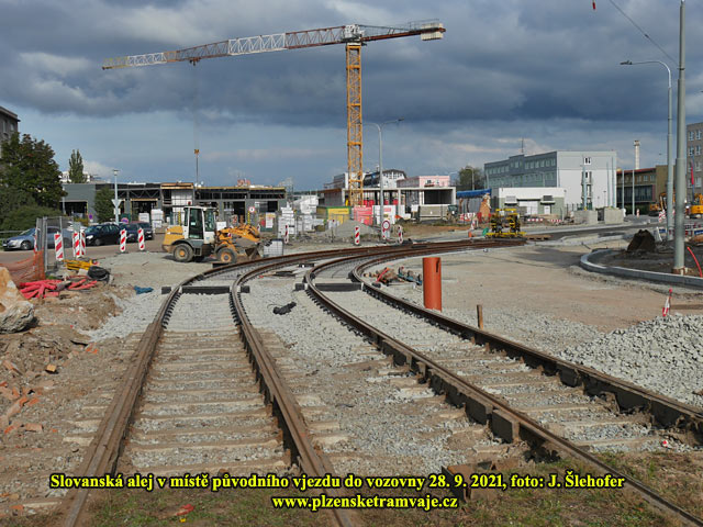 Rekonstrukce Slovanské aleje také pokračuje. Novou podobu získává křižovatka u bývalého vjezdu do vozovny. Tramvajová trať zde již bude procházet pouze obloukem Slovanskou alejí.