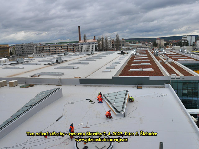 Stavební práce pokračují na velké hale pro odstav vozů a na administrativní budově. Všechny haly vozovny pokryjí tzv. zelené střechy.