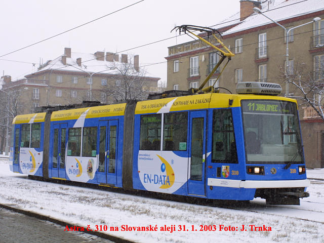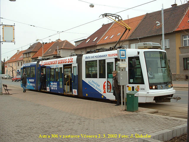 Jedeme na Slovany V sadech Pětatřicátníků nasedáme na centrální zastávce na linku č. 1. V ranní špičce tu bývá docela šlapanice a zmatek. Tramvaj s námi odbočuje do Prešovské ulice. Tratě v centru města jsou vedeny ojedinělými jednosměrnými jednokolejkami. Protisměrná kolej jde Solní ulicí ob jednu ulici vlevo. Prešovskou ulicí přijíždíme esíčkem na náměstí Republiky. Dominuje mu gotický kostel sv. Bartoloměje ze 14. století s nejvyšší kostelní věží v ČR (102,6m). Tramvajová trať jde hned při chodníku, takže lze pohodlně vystoupit. Kolejiště je zde tvořeno velkoplošnými BKV panely. My pokračujeme druhým esíčkem do Zbrojnické ulice a mírně klesáme. Křížíme městský sadový okruh a opouštíme historické centrum a také kolejiště z BKV panelů. Přijíždíme kolem manipulačního obratiště U Zvonu. Tramvajové koleje vedly kolem celého domu U Zvonu a byly napojeny na trať podobně jako bývají silnice na kruhový objezd. Po povodních v létě 2002 nechalo městu dům U Zvonu bohužel zbourat a obratiště dosud nebylo znovu zatrolejováno v plném rozsahu. Dosud zde stojí provizorní sloupy v mohutných betonových patkách. V budoucnu se manipulačním obratištěm však opět počítá, po rekonstrukci celého tohoto prostoru. Setkáváme se zde tedy s protisměrnou kolejí, která odsud pokračuje Pražskou ulicí kolem vodárenské věže. Na náměstí Republiky míjí po pravé straně nádhernou renesanční budouvu radnice z konce 16. století. Po levé straně od trati stojí Morový sloup z roku 1681. Esíčkem trať pokračuje do Solní ulice. Ale vraťme se k našemu směru. Po několika obloucích v prostoru U Zvonu přijíždíme do zastávky Anglické nábřeží. Vlevo je v řadě domů původní zástavby také budova bývalého kina Hvězda, dnes s vietnamskou tržnicí. Vpravo je pak vysoký věžák po rekonstrukci, dnes Business centrum Bohemia. Kolejiště zde je i přes opakované opravy ve špatném stavu. Celková rekonstrukce včetně podloží se připravuje už několik let. Jedem dál. Přejíždíme řeku Radbuzu po mostě U Jána, který byl po povodních v roce 2002 ve špatném stavu a v roce 2005 byl rekonstruován. Na pravé straně na nábřeží vidíme zchátralou budovu městských lázní a blíže k nám budovu Policie. Na levé straně před křižovatkou bývalo obratiště prvních trolejbusových linek na Doubravku a k Ústřednímu hřbitovu. Přes křižovatku s ulicí U Prazdroje vjíždíme do Sirkové ulice. Pivovar vidíme po levé straně. Projíždíme křižovatku s mnoha trolejbusovými kříženími, které se občas ve spojení s hustou dopravou neukázněných řidičů aut v křižovatce, mohou stát pastí na tramvaje. Dříve tramvaje jezdily větším obloukem Nádražní ulicí, od roku 1992 je tramvajová zastávka Hlavní nádraží umístěna u ústí podchodu v Sirkové ulici. Sirková ulice je vlastně jen název silniční spojky. Žádné domy z původní Sirkové ulice neexistují, byly zbourány před stavbou těchto silničních průtahů. My pokračujeme přes Křižovatku s Americkou a Šumavskou ulicí pod podjezdy u Hlavního nádraží, které vidíme vlevo a mírně stoupáme Mikulášskou třídou. Projíždíme v Plzni ojedinělým úsekem, kde spolu jezdí tramvaje i trolejbusy. Ty však odbočují hned na kraji Mikulášského náměstí vlevo. My pokračujeme dál. Po levé straně stojí budova gymnázia z roku 1914. Následující zastávka Mikulášské náměstí byla z původního místa posunuta v roce 2006 až ke křižovatce se Sladkovského ulicí. Tady je další plzeňská rarita. Tramvajová trať je vedena po okrajích Slovanské třídy se silnicí uprostřed. Toto uspořádání leží stále některým dopravním „odporníkům“ v žaludku a v budoucnu se uvažuje o rekonstrukci Slovanské třídy v její horní části s normálním uspořádáním. Při tom pro cestující je toto lepší, když vystupují přímo na chodník. Jedeme dále. Odtud v celé délce Slovanské třídy až na konečnou, je trať vedene stejně po okrajích vozovky. Jedná se také o první trať v Plzni tvořenou BKV panely. Za světelnou křižovatkou následuje zastávka Jedlová. Poměrně úzká, sevřená vyššími domy, je Slovanská třída až k zastávce Liliová. Tady je další světelná křižovatka (využíván je zejména přechod pro chodce). Odtud výš a zejména za křižovatkou s Částkovou ulicí se třída rozšiřuje, jak je patrné z fotografie zastávky Olšová. Nejprve na pravé straně a později i vlevo přechází vysoké domy v nižší rodinné domky. Novějí upravené chodníky se zámkovou dlažbou můžeme vidět v zastávce Vřesová. Zbývá nám poslední rovinka. Z prava se připojuje trolejbusová trať linky č. 13, která pak naším směrem pokračuje po Nepomucké třídě do Černic. My přijíždíme do konečné zastávky Slovany na náměstí Milady Horákové. Vpravo od zastávky se nachází park s kopcem Homolka. Tramvajová trať odbočuje vlevo a smyčka je zde tvořena několika křižovatkami. Další odbočkou vlevo tramvaj pokračuje do nástupní zastávky směr Bolevec a vpravo pak vede manipulační trať k tramvajové vozovně. Rekonstrukce celého prostoru náměstí Milady Horákové se plánuje, ale zatím se odborníci nemohou shodnout na konečném uspořádání tohoto přestupního uzlu. Jsou však návrhy na přeložení tramvajové trati do středu Slovanské třídy. Tím by se bohužel odstranilo to příjemné vystupování přímo na chodník a zejména ukázkový přestup z tramvaje na trolejbus směr Černice. V další budoucnosti se také plánuje prodloužení tramvajové linky č. 1 dál po Nepomucké třídě do prostoru bývalých kasáren. Bolevec, Slovany, Skvrňany, Světovar, Bory, Košutka © Jan Šlehofer |