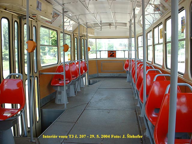sedačkami (později potažené textilním potahem). Vozů je však jen dvanáct a tak v provozu dominují stále vozy T3 s laminátovými sedačkami. V několika vozech se