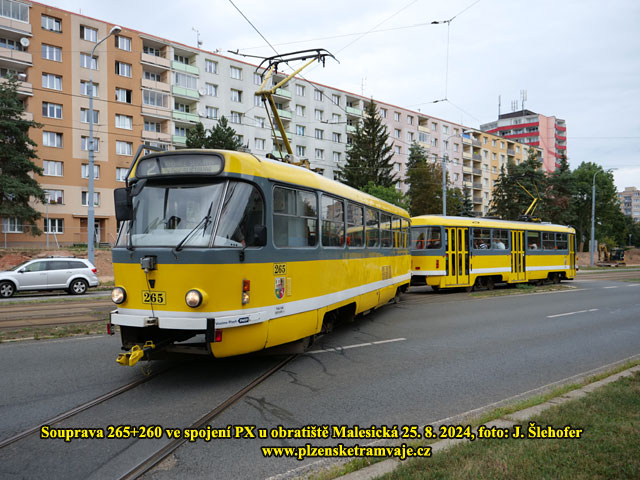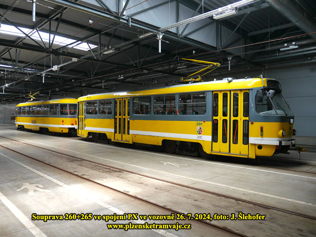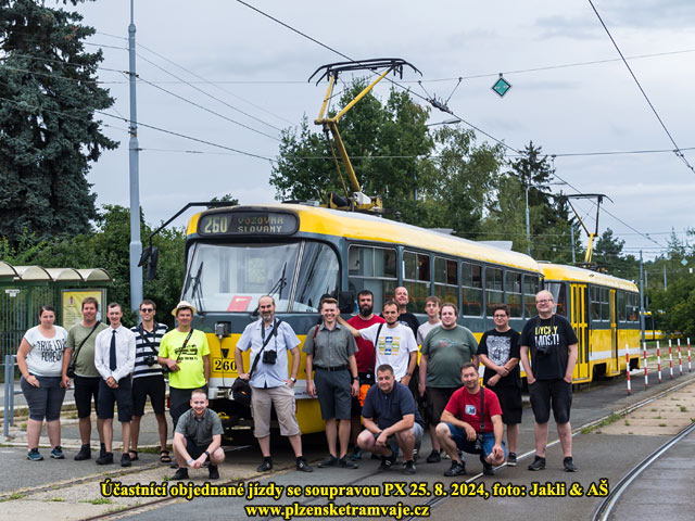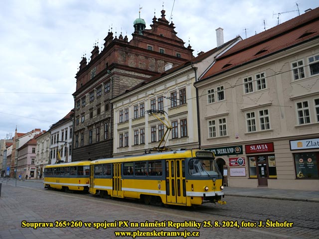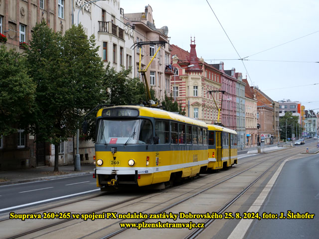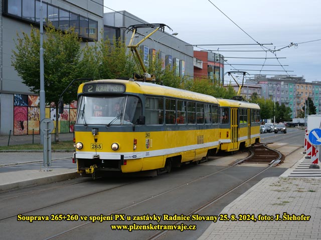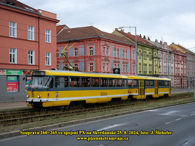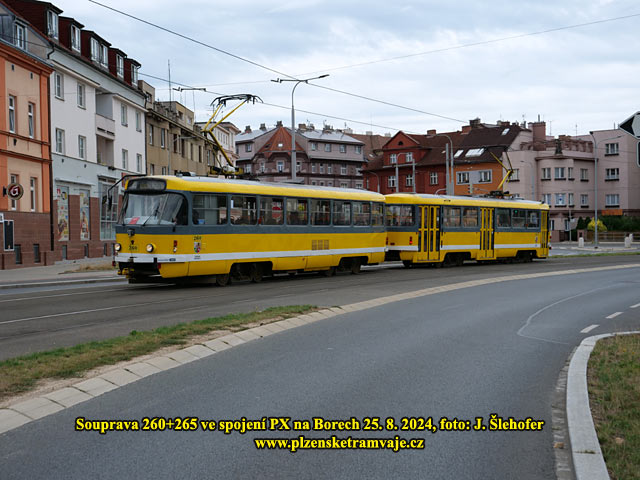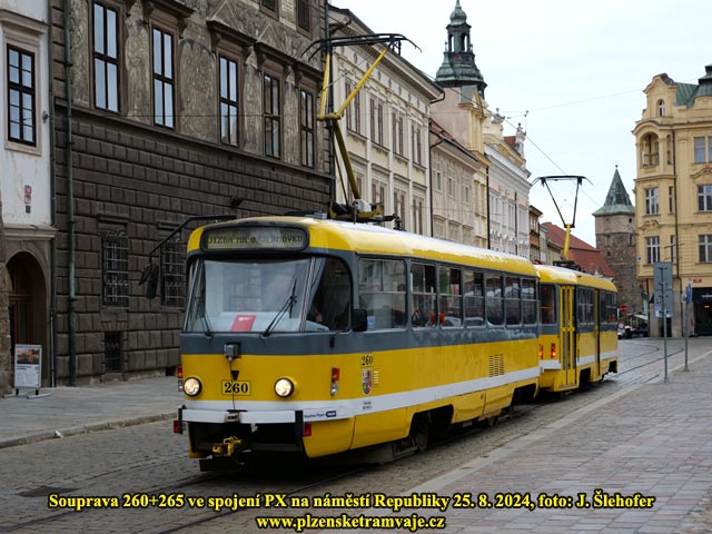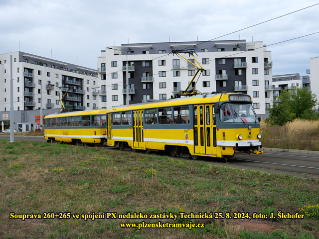 V neděli 25. 8. 2024 v odpoledních hodinách se po Plzni pohybovala na objednané jízdě souprava T3R.P 260+265 ve spojení PX.