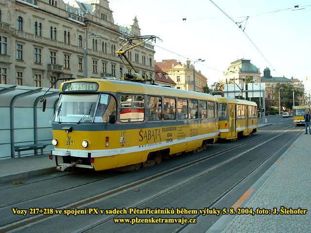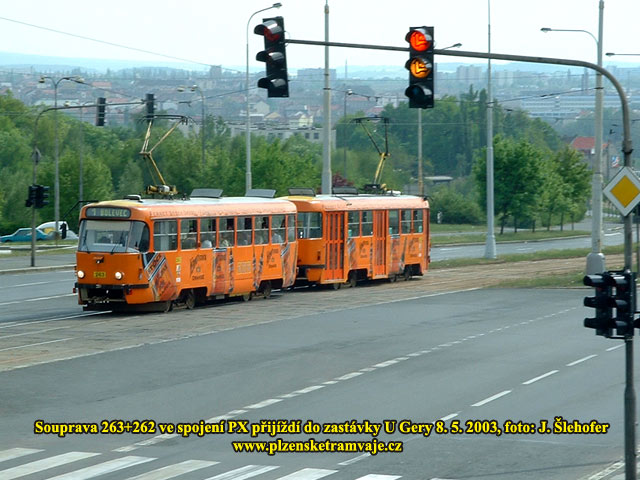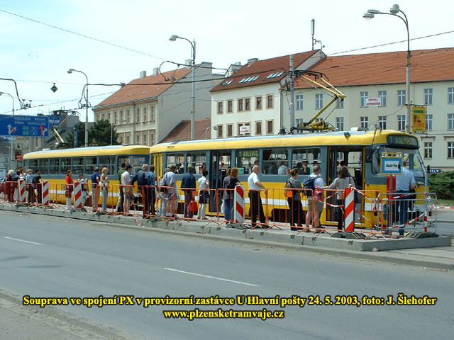 Po druhé byly soupravy ve spojení PX použité při jedné z etap rekonstrukce sadů Pětatřicátníků v roce 2003. Při této etapě (od 5. 5. 2003 do 24. 5. 2003) byly linky na severní předměstí odříznuté od ostatního tramvajového provozu a ukončeny povrchovou úvraťovou výhybkou v zastávce U Hlavní pošty,