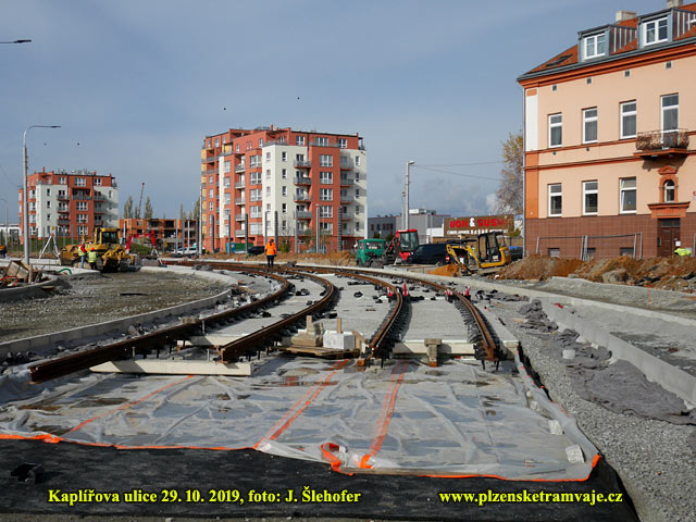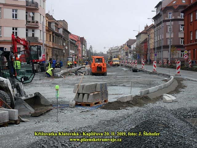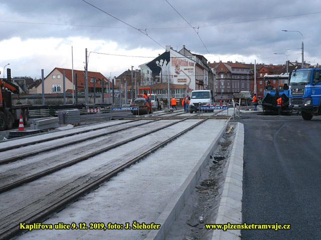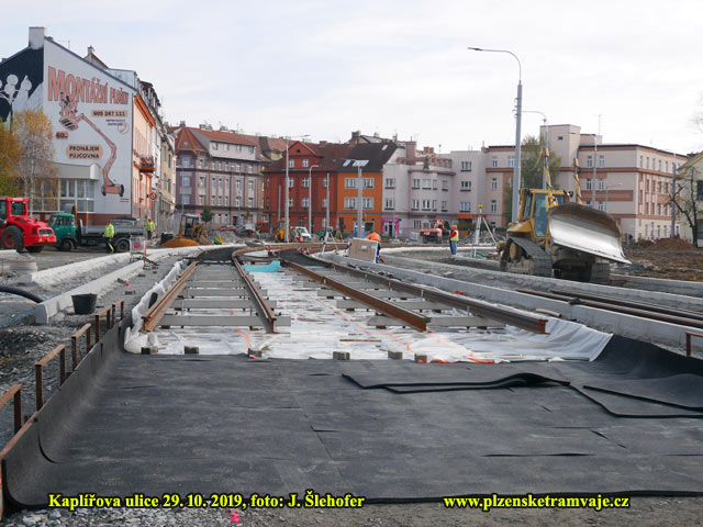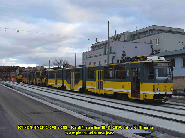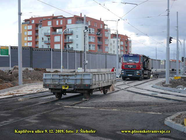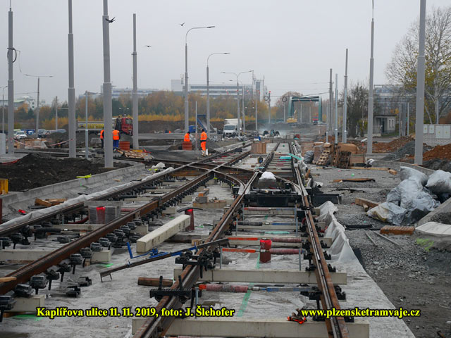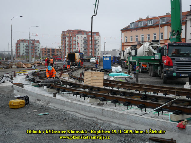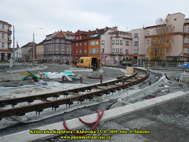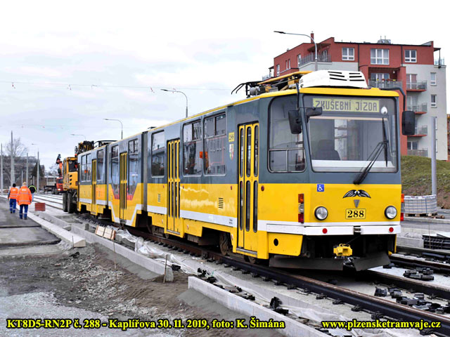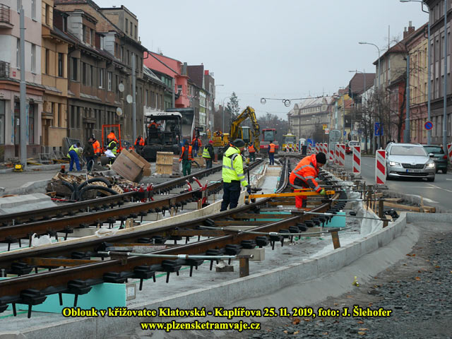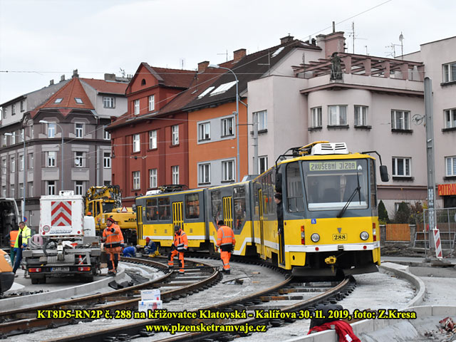 23. 11. 2019 25. 11. 2019 Koncem listopadu se stupňují práce v křižovatce Klatovská - Kaplířova. Trať musí být kompletně kolejově propojená 30. 4. 2019, na kdy je naplánována zatěžkávací zkouška mostu. Dle požadavku Drážního úřadu na ní mají být dva vozy KT8D5-RN2P.