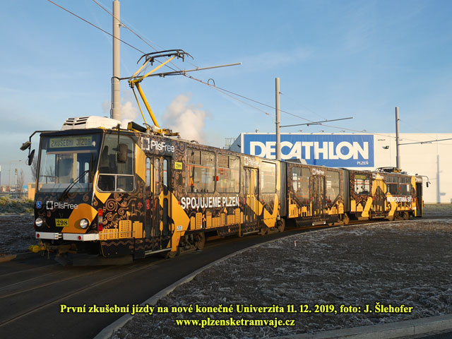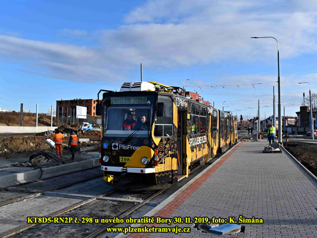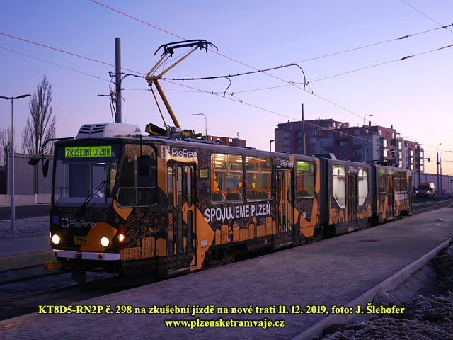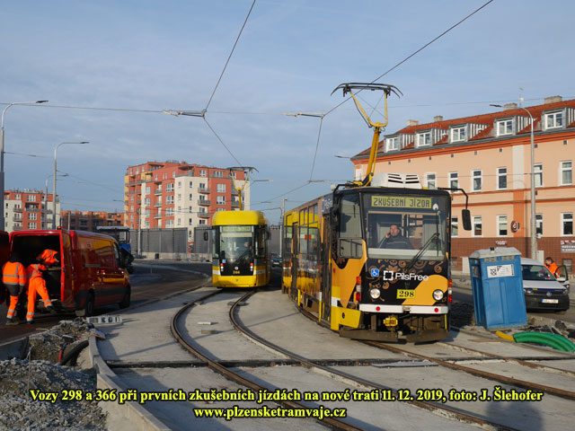 11. 12. 2019 11. 12. 2019 Po kontrole míjení v oblouku křižovatky Klatovská - Kaplířova pak vůz 366 odjíždí a vůz KT8D5-RN2P č. 298 ještě jednou míří na konečnou Univerzita a zpět.