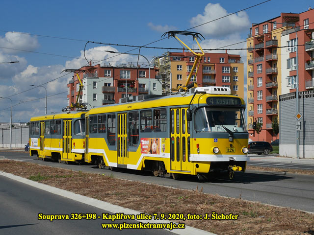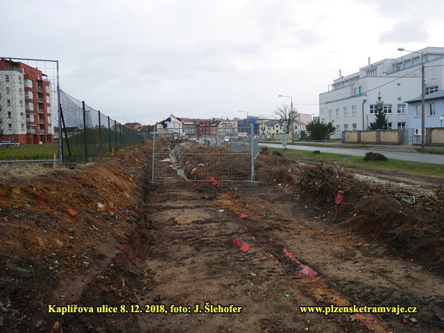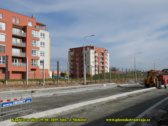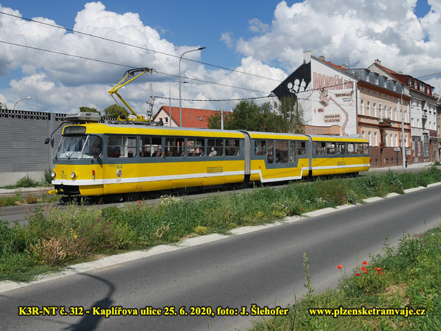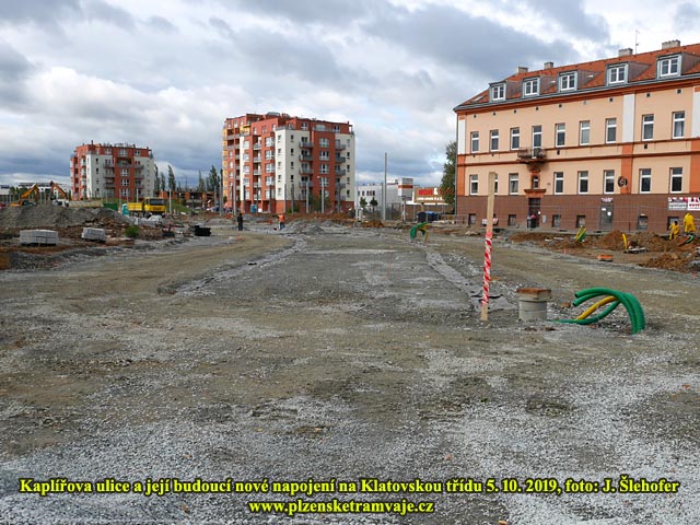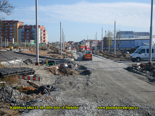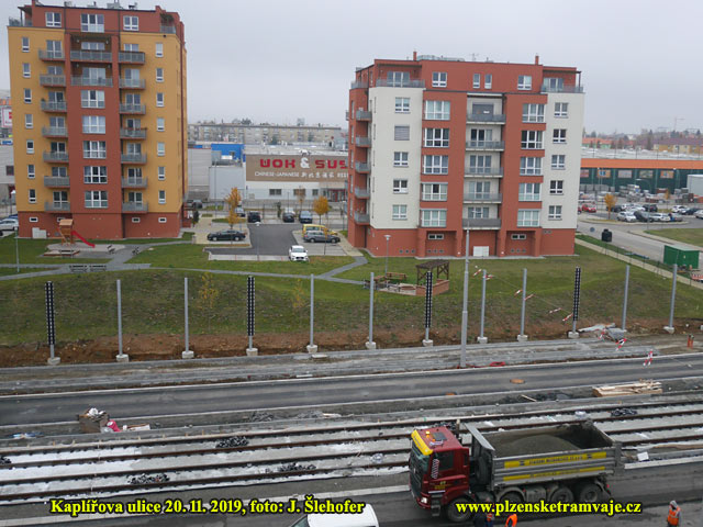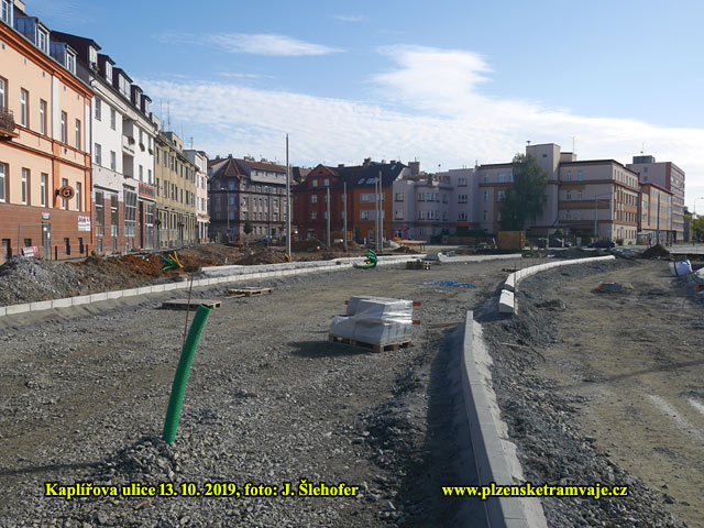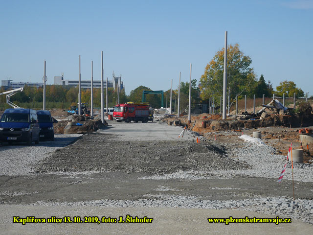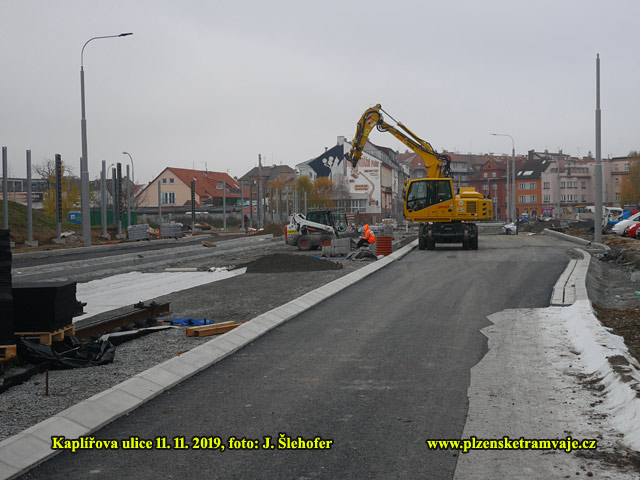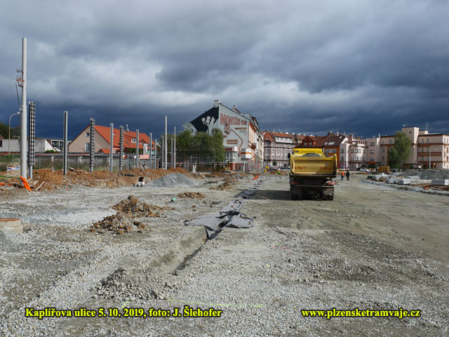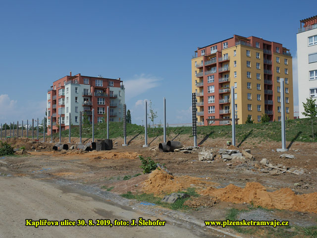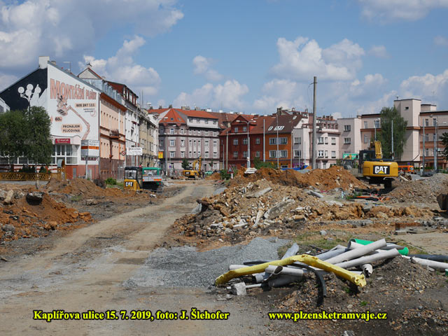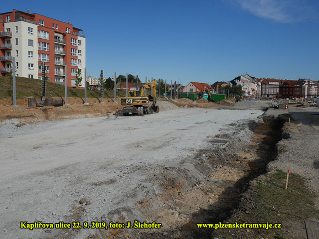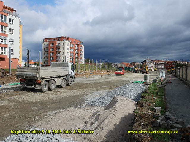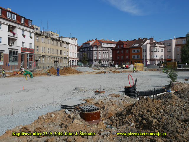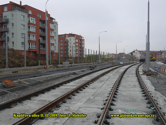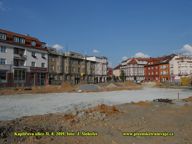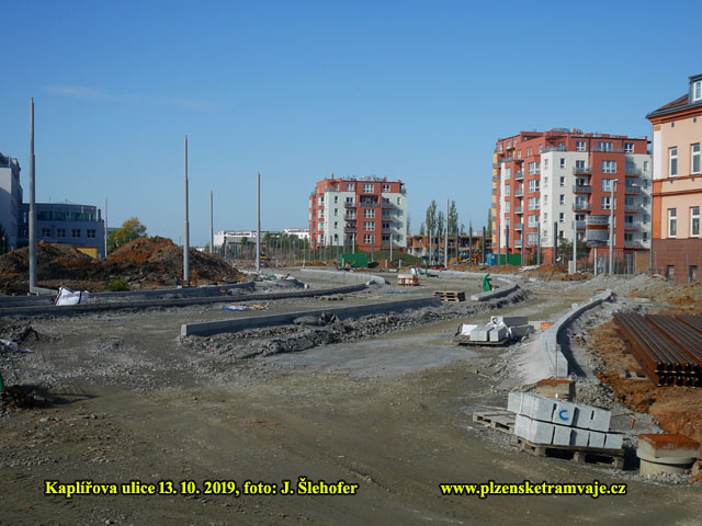 K3R-NT č. 312 v Kaplířově ulici 25. 6. 2020 Souprava 326+198 v Kaplířově ulici 7. 9. 2020 Během léta byly dokončeny chodníky a po té se to na stavbě mnoho neděje. Pouze je ještě dosypána zemina na některá místa. Ostrůvky a dělící pásy v Kaplířově ulice zatím zarůstají bujnou náletovou zelení. V polovině srpna je tato zeleň posekána. Následně je zde prováděn postřik a tato náletová zeleň usychá. Zdá se mi však divné, že se zde dále nic s ní neděje.
