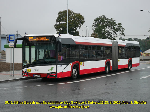 O svátku 28. 9. 2020 probíhala k Univerzitě výluka. Všechny tramvaje linky č. 4 končily již v obratišti Bory a zde navazovaly cca na každý druhý spoj autobusy náhradní dopravy označené 4A k Univerzitě. Během výluky došlo k vyrovnání kolejiště a tedy ke zrušení omezení rychlosti. Na místech kde kolejiště přechází z otevřeného svršku na pevnou jízdní dráhu se objevilo dodatečné zasypání štěrkem v délce několika metrů.