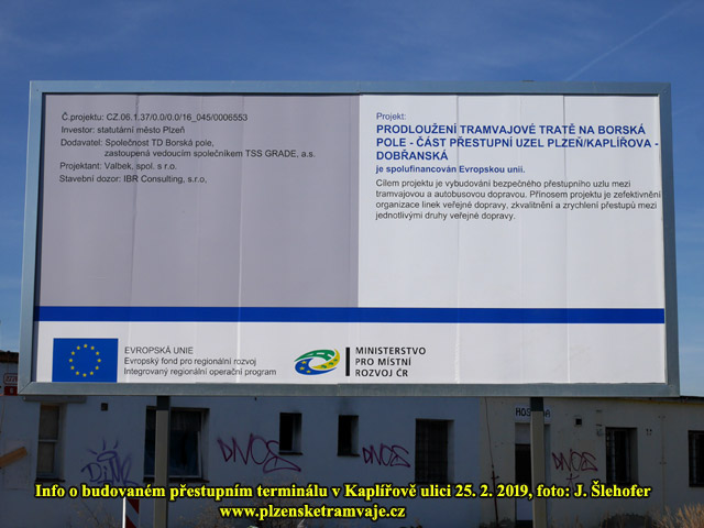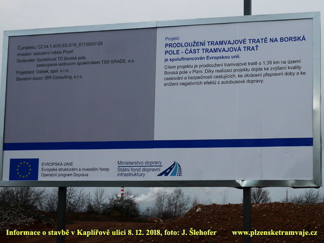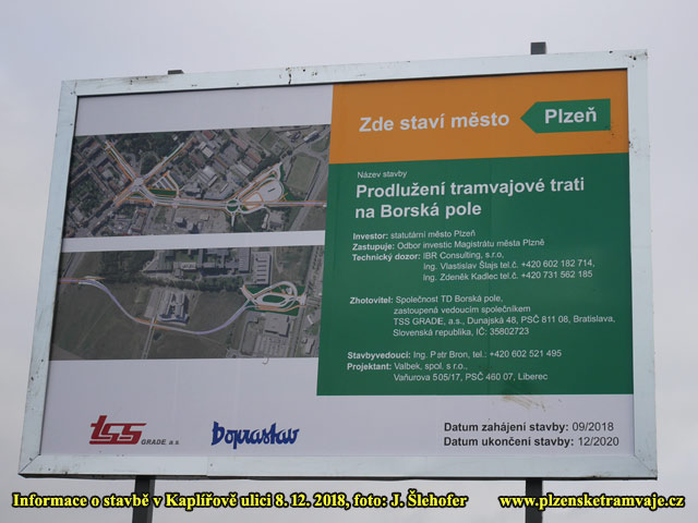 8. 12. 2018 8. 12. 2018 Na místě se také objevují dva bilboardy o stavbě. Jeden informuje, že se jedná o stavbu města Plzně vč. mapky trati a kontakty na zhotovitele i technický dozor a druhý informuje o spolufinancování projektu z fondů Evropské unie.