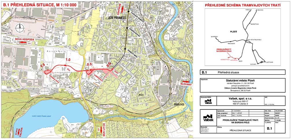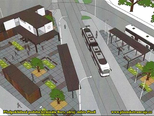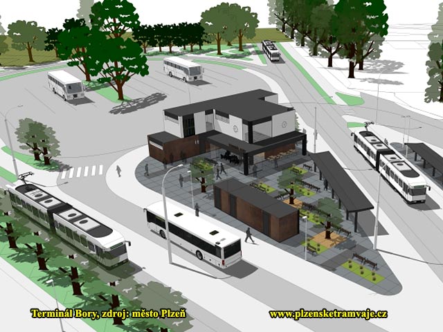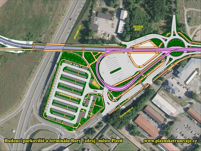 Nákres tramvajové trati na Borská Pole - zdroj: město Plzeň Náhled na plány terminálu Dobřanská z webu města Na jaře 2018 je městem vypsáno výběrové řízení na zhotovitele stavby "Prodloužení tramvajové trati na Borská pole". V níže přiloženém odkazu v archivu dokumentů najdete v Zadávací dokumentaci (příloha č. 4a - dokumentace) mnoho podrobných plánů. Na přiloženém obrázku vpravo je např. náhled na první konečnou s terminálem MHD za křižovatkou Kaplířova - Dobřanská.