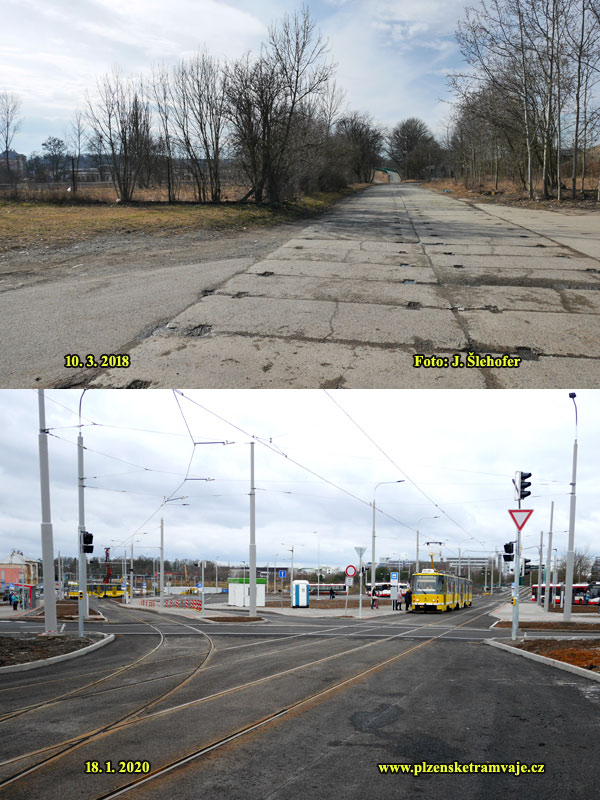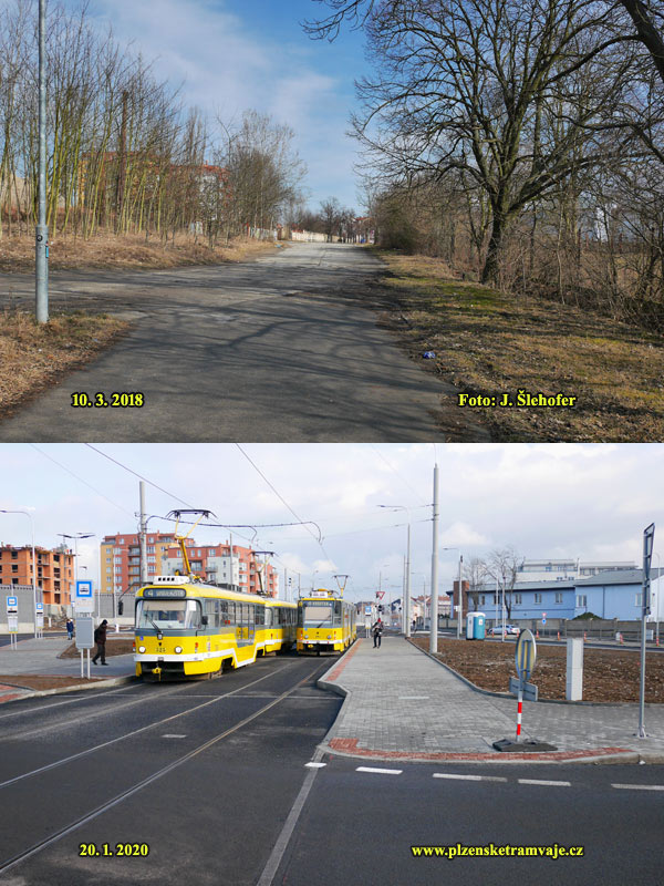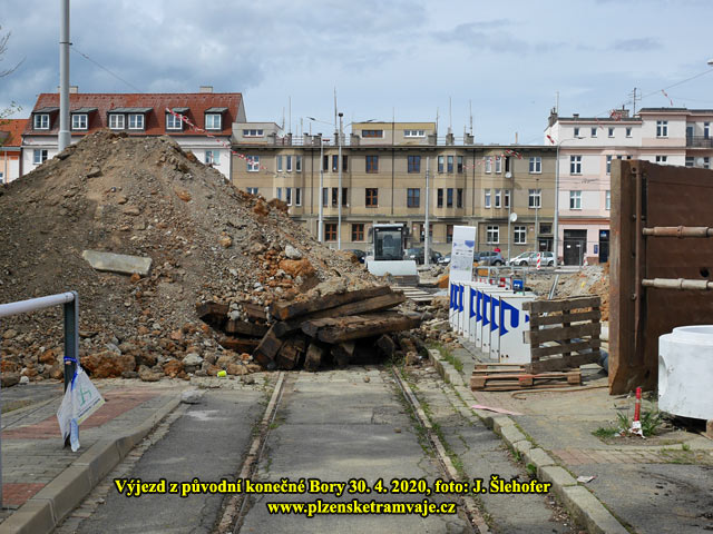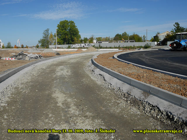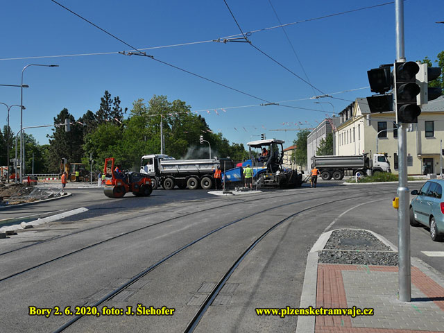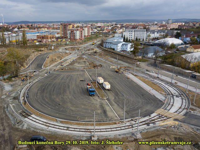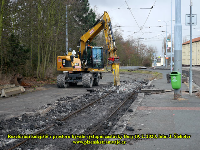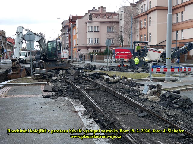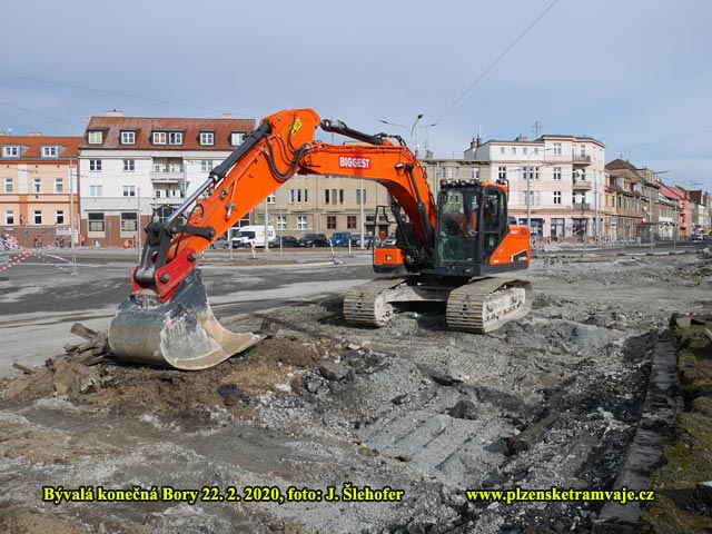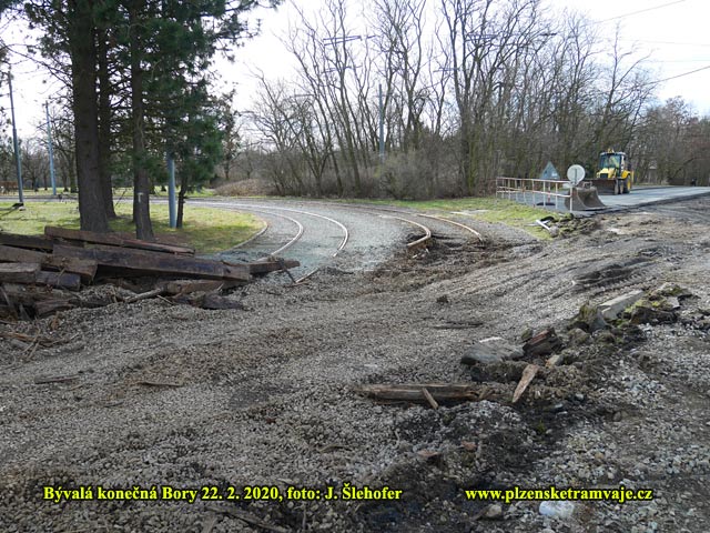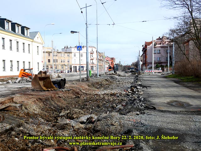19. 2. 2020 Také během těchto stavebních prací mizí další část staré konečné Bory, respektive její vjezd a výstupní zastávka. V těchto místech bude rozšířená křižovatka, respektive nové jízdní pruhy a záliv autobusové zastávky.