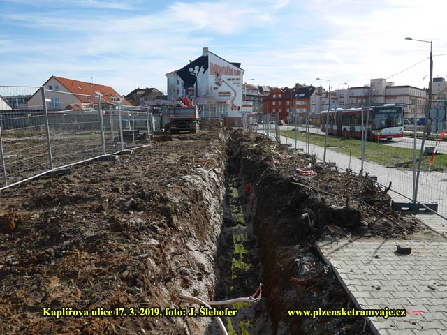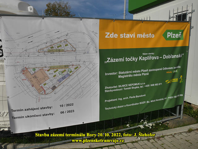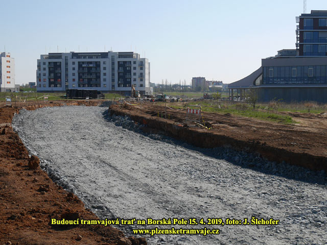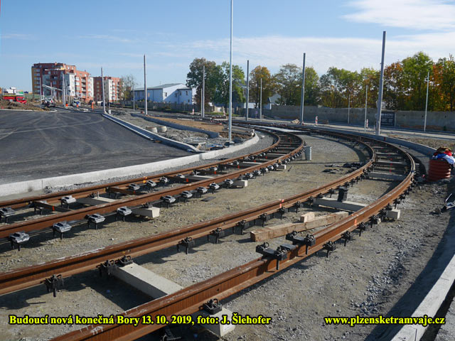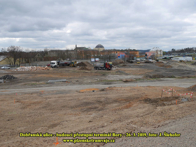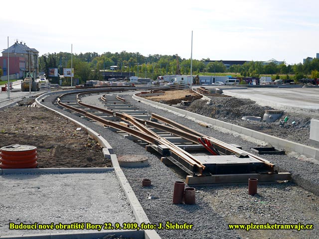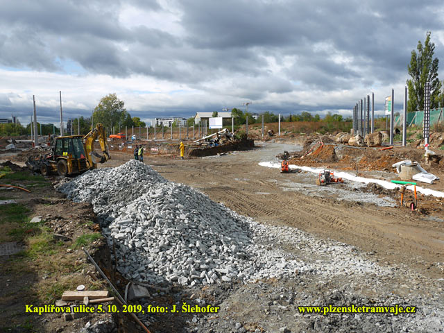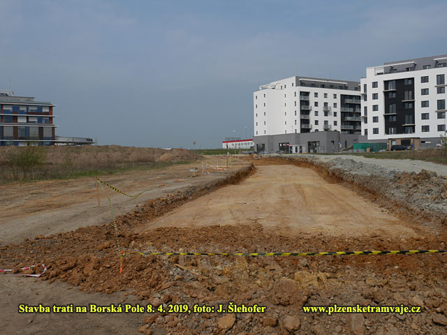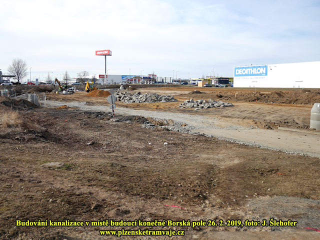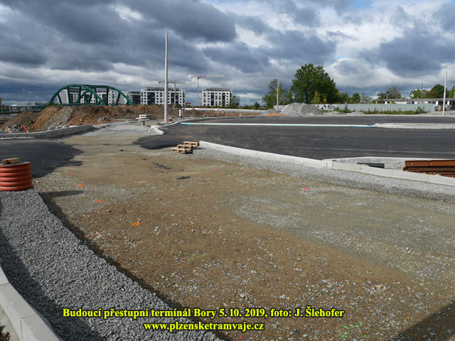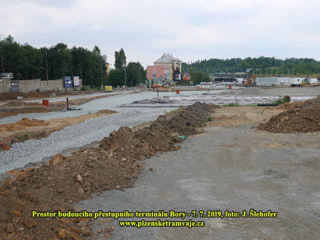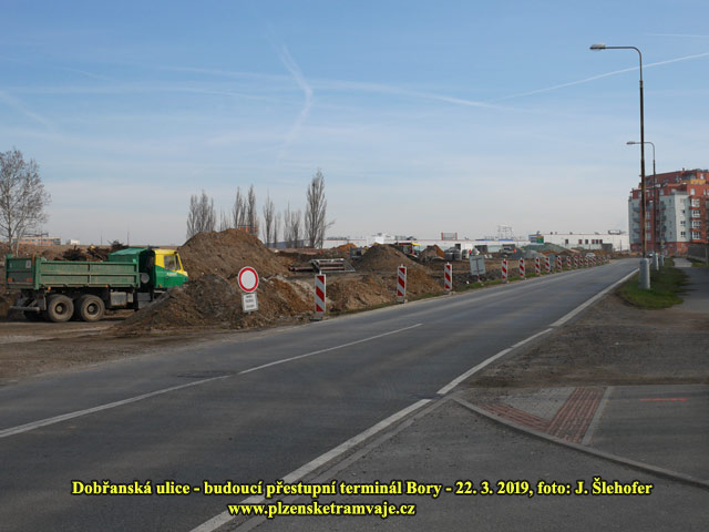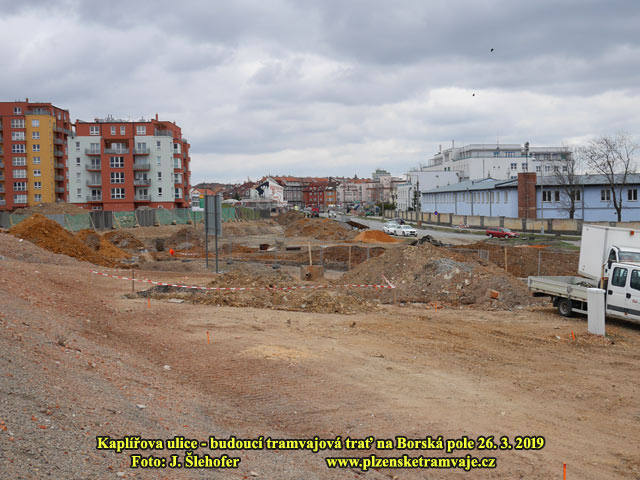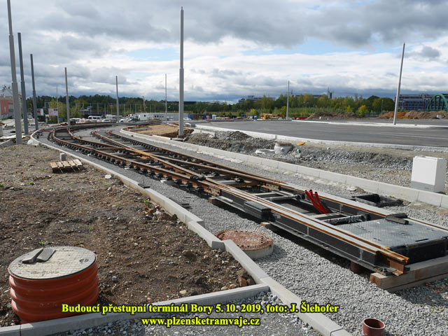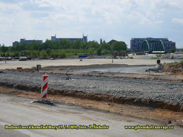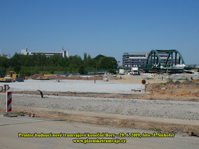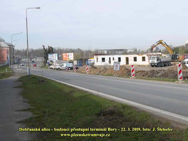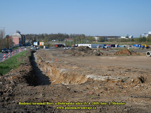 15. 4. 2019 Teréní úpravy a stavba kanalizace a dalších sítí probíhají také v prostoru budoucího přestupního terminálu za křižovatkou Kaplířova - Dobřanská. Pracovně byla tato konečná nazývána Kaplířova, ale po zrušení původní tramvajové smyčky u Borského parku bude patrně pojmenována Bory.