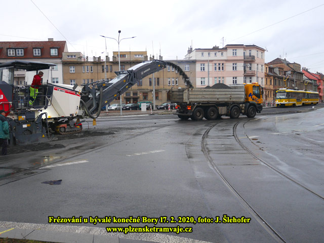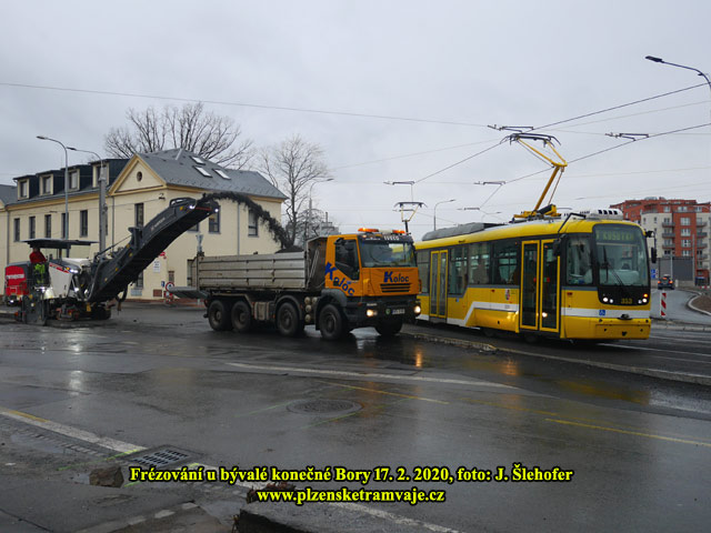 17. 2. 2020 17. 2. 2020 Přibližně do poloviny února byl stavební ruch na Borech přerušen. Následně se pracuje např. na dokončování některých chodníků a od 17. 2. 2020 je pak pro dopravu uzavřena křižovatka Klatovská - Kaplířova - U Borského parku, s vyjímkou směru z Klatovské do Kaplířovy. Začíná se s rekonstrukcí této křižovatky, při které bude vybudována také tramvajová zastávka pro směr do centra. Během prvního dne uzavírky je frézován asfalt, jak ukazují fotografie. Tramvaje projíždí bez omezení.